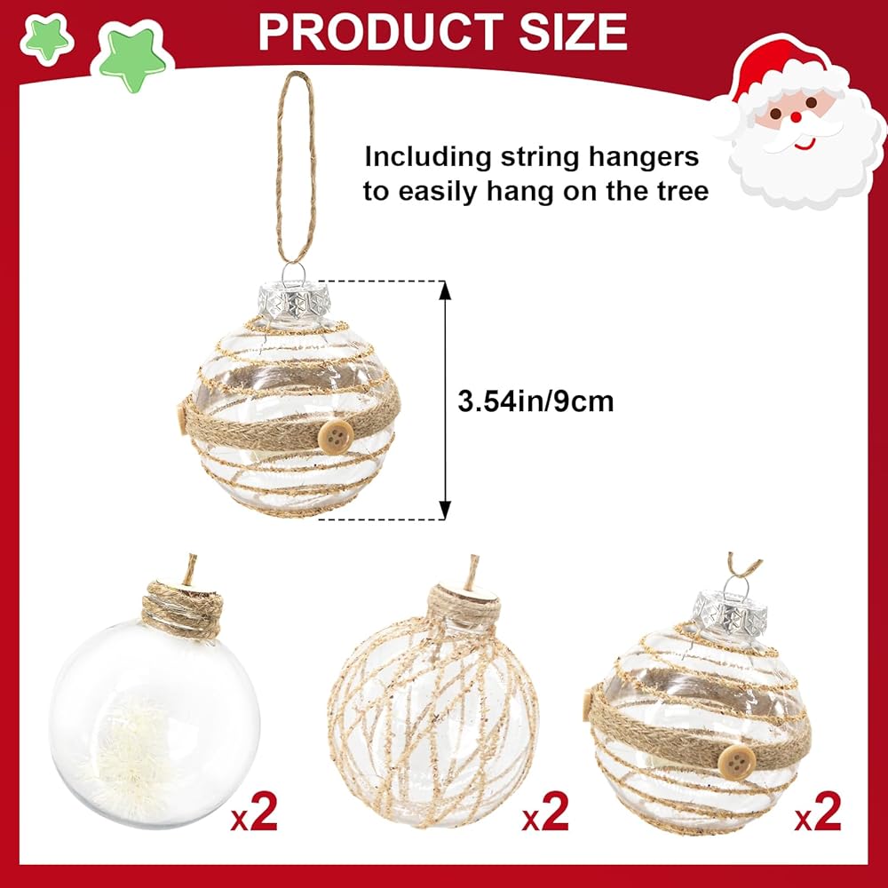Durable Material:The Christmas decorations balls are made of shatterproof plastic, not easy to break or deform, providing a long-term use and clear color, not easy to fade.The loop at the top is designed for easy hanging with string of your choosing.