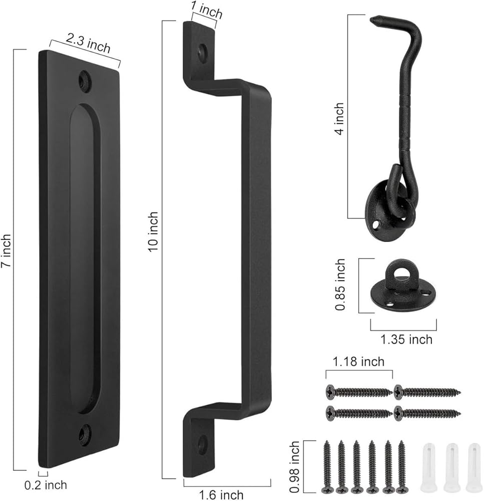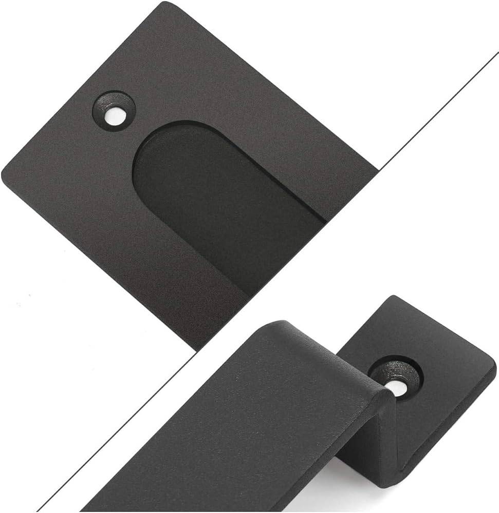 SPECS. Our modern barn door handle hardware with large size 10 inch in length, 1 inch in width, and flat flush pull door handle with a length of 7.3 inch, width of 2.3 inch, wall thickness of 5mm