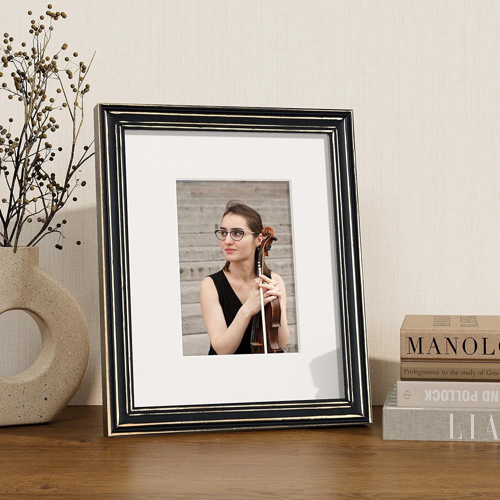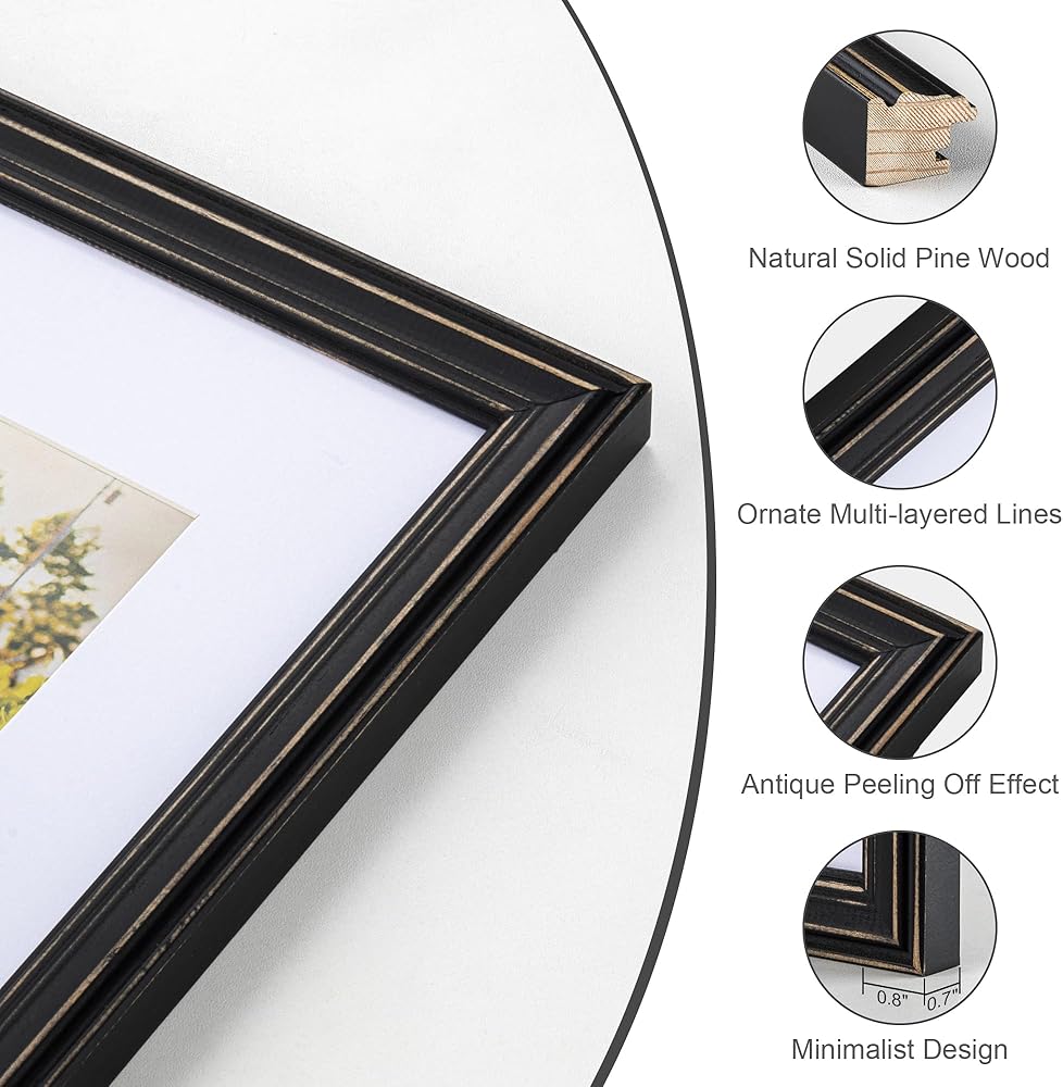 NATURAL SOLID WOOD FRAME - Our photo frame is made of natural solid pine wood. The antique peeling-off effect and multi-layered Lines give you a charming and vintage feel. Whether you want to show photos or artwork, this 8x10 frame is a great choice