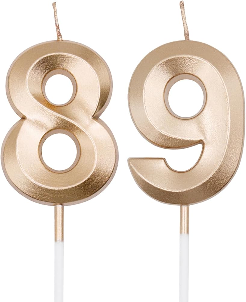 Champagne Gold 89th & 98th Birthday Candles for Cakes, Number 89 98 Candle Cake Cupcake Topper for Birthday Anniversary Party Decoration