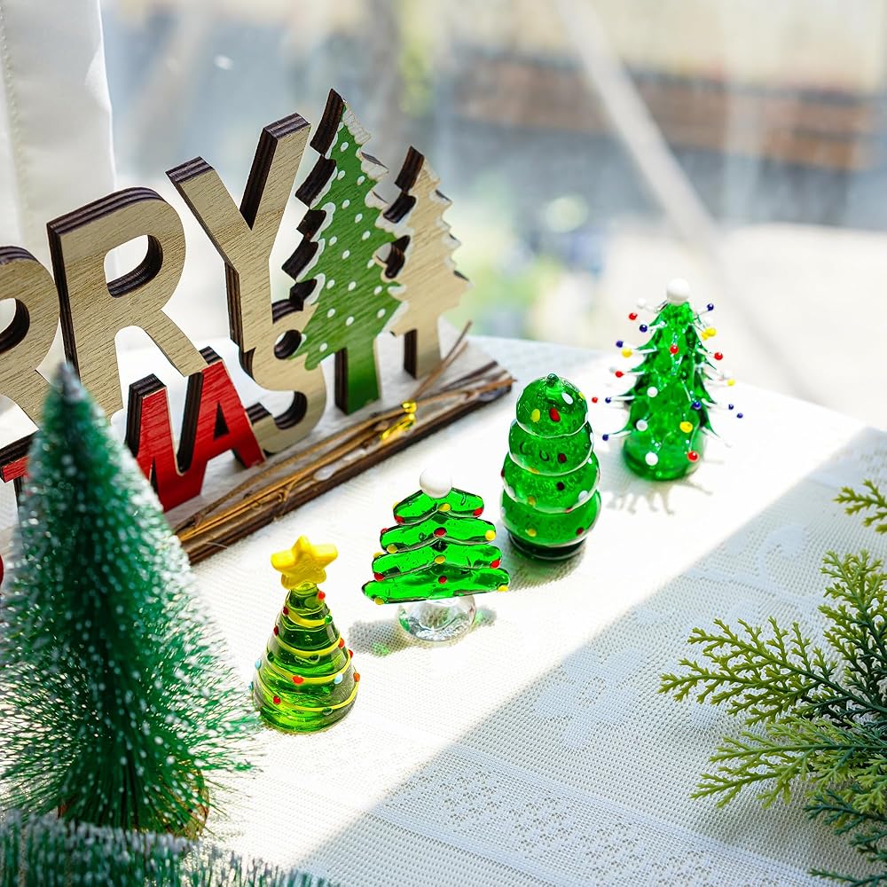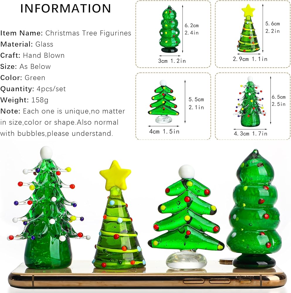 Durable and High-Quality: Made from premium art glass, these figurines are built to last, ensuring years of enjoyment as treasured holiday keepsakes. Pack with 4pcs,size approx 1.2*2.4inch, 1.1*2.2inch, 1.5*2.1inch, 1.7*2.5inch
