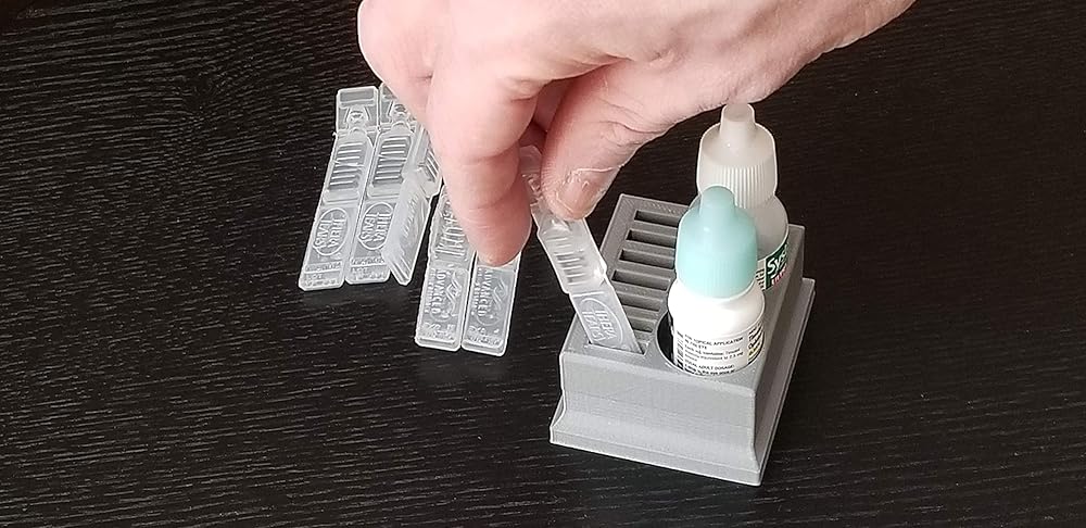 Eye Drops Vial Holder & Storage - Holds 7 Single-Use Disposable Eye Drop Vials & 2 Standard Size 1 Inch Bottles - Znet3D Help keep track of your daily dosage with our eye drop holder, that holds 7 disposable eye drop vials, one for each day of the week. In addition help keep your eye drop bottles in one place. Conveniently store your drops in the fridge for ease of access and security. Small compact design to help mitigate the storage foot print in the refrigerator while keeping your eye drops safe and conveniently accessible. Available in many colors! Bundle and Save! Designed, developed and produced in the USA. Made with, Plastic, (PLA) Holds 7 disposable eye drop vials per holder and 2 1 inch size eye drop bottles Universally compatible with any brands: Systane, Refresh, Retain, Bion Tears, Zioptan, Xiidra... etc. *Need More? Please contact us for volume discounts! -We at ZNET3D take great pride in all the products that we offer, We strive to continually improve in our 3D printing processes as well as customer satisfaction and support. Shop with confidence knowing that you are purchasing the products directly from the source. I hope you enjoy our selection and authenticity and continue to support us. -Check out our Online Shop: Znet3D -Like us on Facebook: Znet3D -Follow us on Twitter: #Znet3D -Pin us on Pinterest: Znet3D