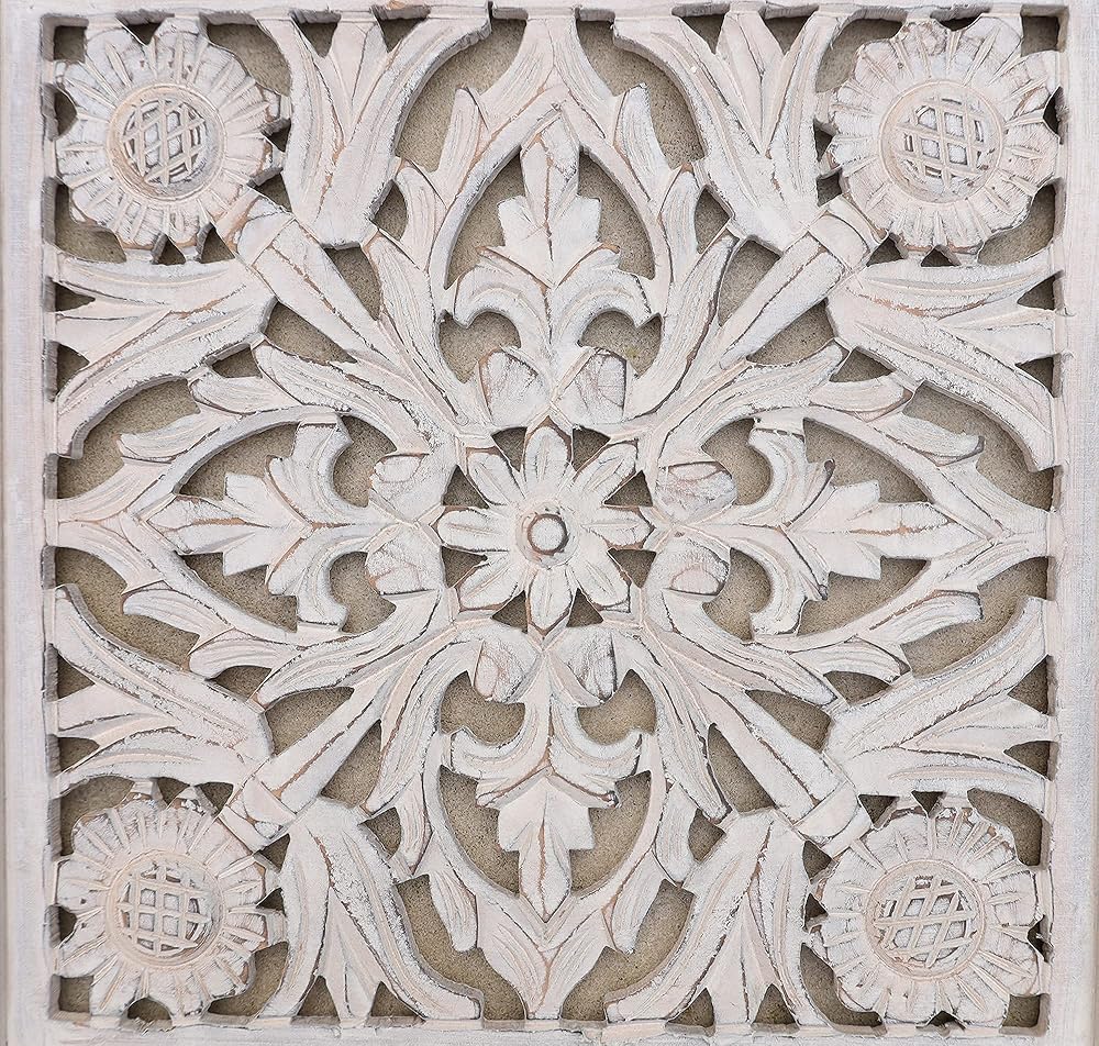DESIGN: This solid recycled wood features intricately carved deep Lotus Flower design. Hang right out of the box with pre-mounted hardware