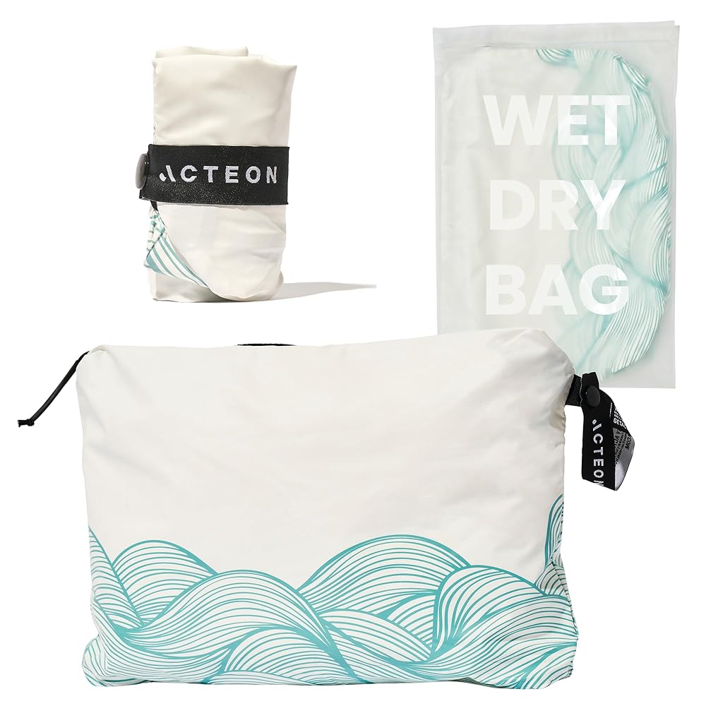 Acteon Wet Dry Travel Bag, Splash Water Resistant & Heavy Duty Zipper Reusable Bags, Small Pocket-Friendly Pouch for Cloth Baby Diaper, Dirty Laundry Clothes, Swimsuit, Toiletries, Beach, Pool & Gym