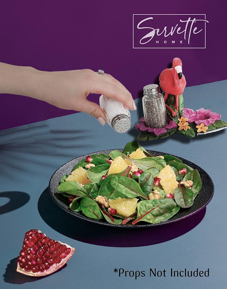 Salt and pepper holder is fashioned from quality, handpainted polyresin.