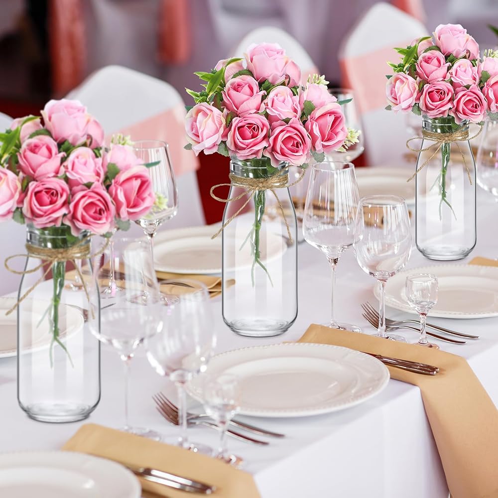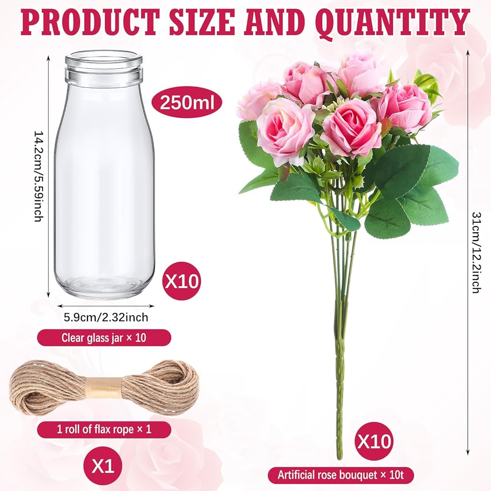 • Wedding Vase Centerpiece Set: you will get 10 pieces of decoration glass vases, 1 roll of rope and 10 pieces of artificial roses, 21 pieces in total, a beautiful combination that can easily meet your decoration needs