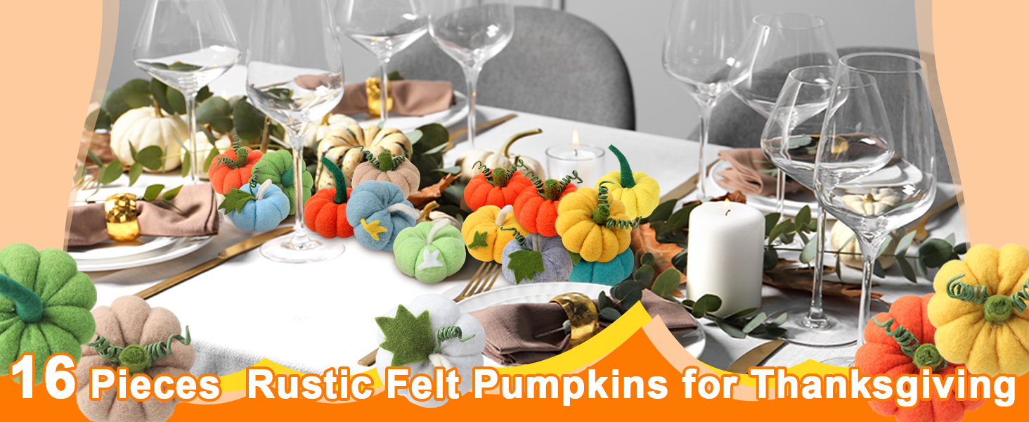 16 قطعة من ديكور طاولة اليقطين الصغيرة لعيد الشكر في الخريف، مصنوعات من قماش اليقطين الصوفي لطاولة مركزية على شكل قرع شجرة الحصاد، زينة معلقة لديكور مزرعة الخريف والهالوين وعيد الشكر