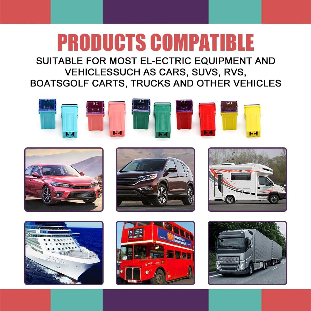[Wide range of applications] : The replacement fuse kit is versatile and can be used in most cars, trucks, SUVs, motorhomes, UTVs, off-road vehicles, ATVs, ships and electronic equipment, etc. This affordable fuse kit can meet your diverse use needs, you do not need to go to the auto store to spend more money, the mini fuse kit effectively saving your valuable time and energy.