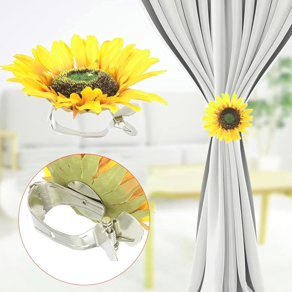 4PCS Curtain Flower Serrated Clip Stainless Steel Serrated Back Clip 3x1x1.2 inches Large Clamp Curtain Decoration Anti Slip Sunflower Curtain Tieback Strong Clamping Force for Home Decoration
