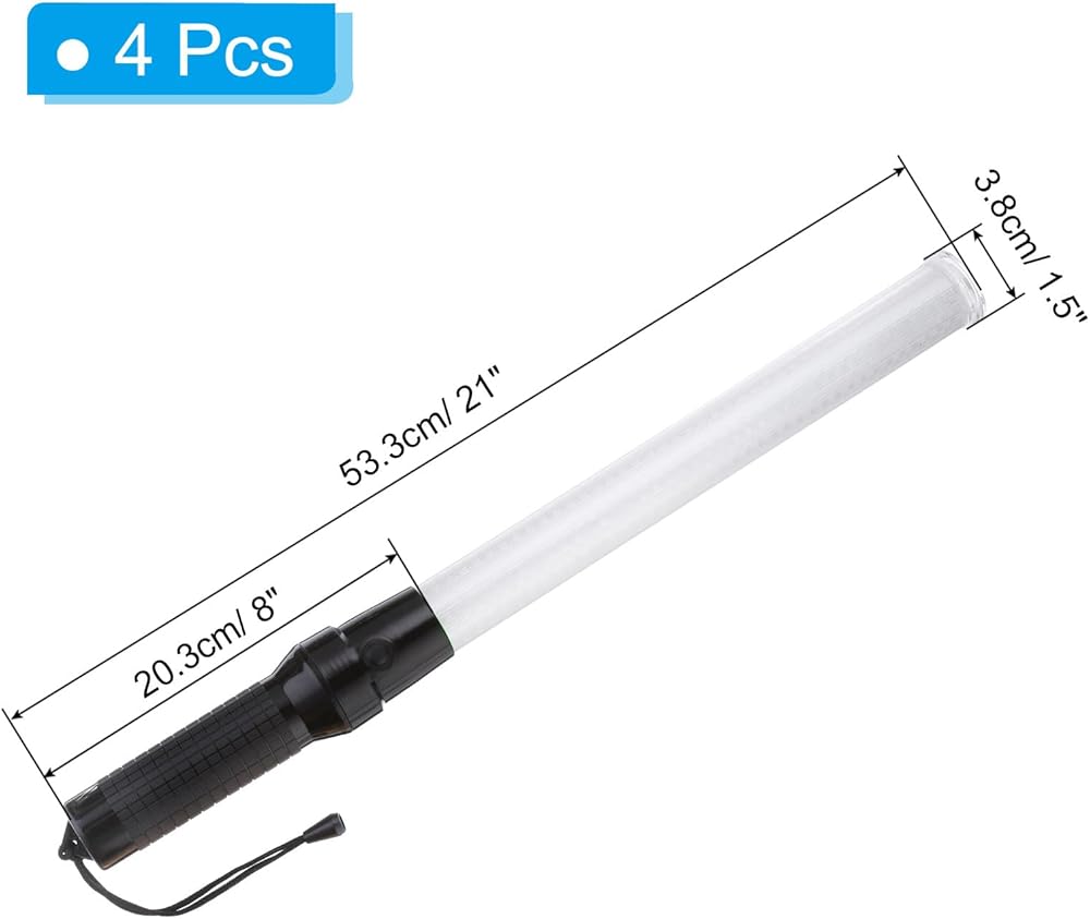 PATIKIL 21inch Traffic Wands, 4Pcs 2 Flashing Modes LED Warning Light Police Signal Controller Baton Lamp with Wrist Lanyard for Car Direct, Traffic, Airport, Parking Guide, White