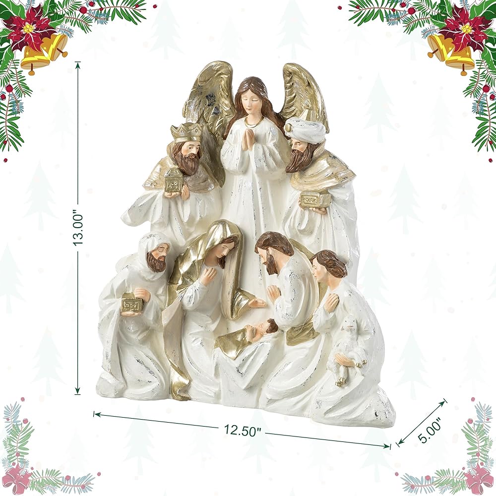 Glitzhome Christmas Nativity Set Nativity Scene Set Indoor 8" Resin Nativity Figurines Set 11 Pcs Removable Angel Statue Blue Nativity Sets & Figures Christian Holy Family Figure with Baby Jesus