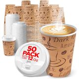 Disposable Coffee Cups with Lids 12 oz (50 Pack) - To Go Paper Coffee Cups for Hot & Cold Beverages, Coffee, Tea, Hot Chocolate, Water, Juice - Eco Friendly Cups