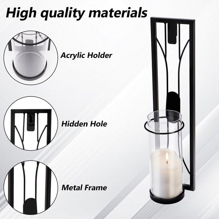 Durable and Sturdy: The wall candle holder is fixed with a square tube frame and a middle iron wire, making the product more sturdy. Each candlestick has two fixed points on the back, which are less likely to shake and more stable