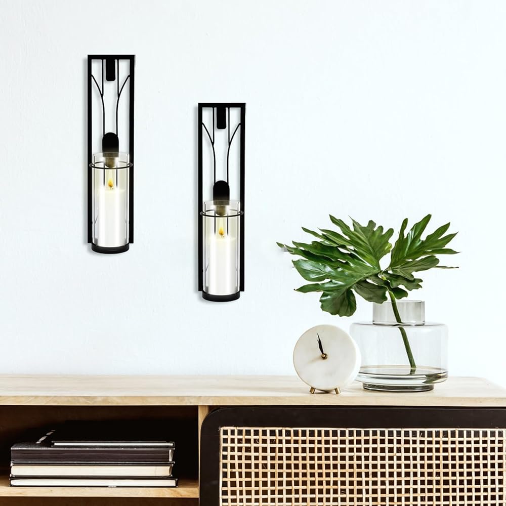 ikare Metal and Acrylic Candle Sconces Set of 2, Wall Sconces Candle Holder for Living Room, Bathroom, Dining Room, Classic Home Decorations(Not Include Candle), Black
