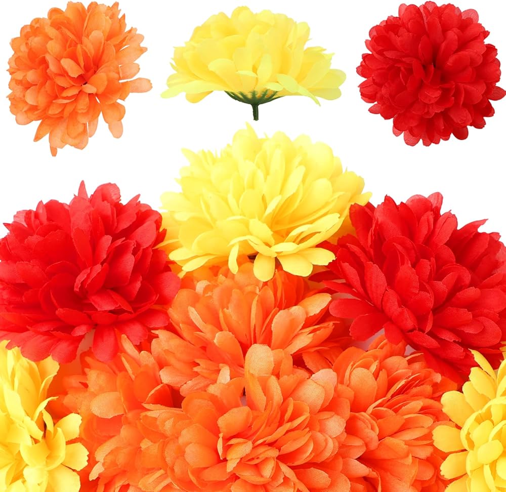 Fluffy And Realistic Artificial Flowers: Our bulk artificial flowers are made of high-quality silk cloth and plastic, which are fluffy like actual marigold. Every Marigold is about 4-inch in diameter and 2.5-inch height. Fake flowers bulk will be your great best decoration for the festival- such as Diwali, Halloween, Christmas.
