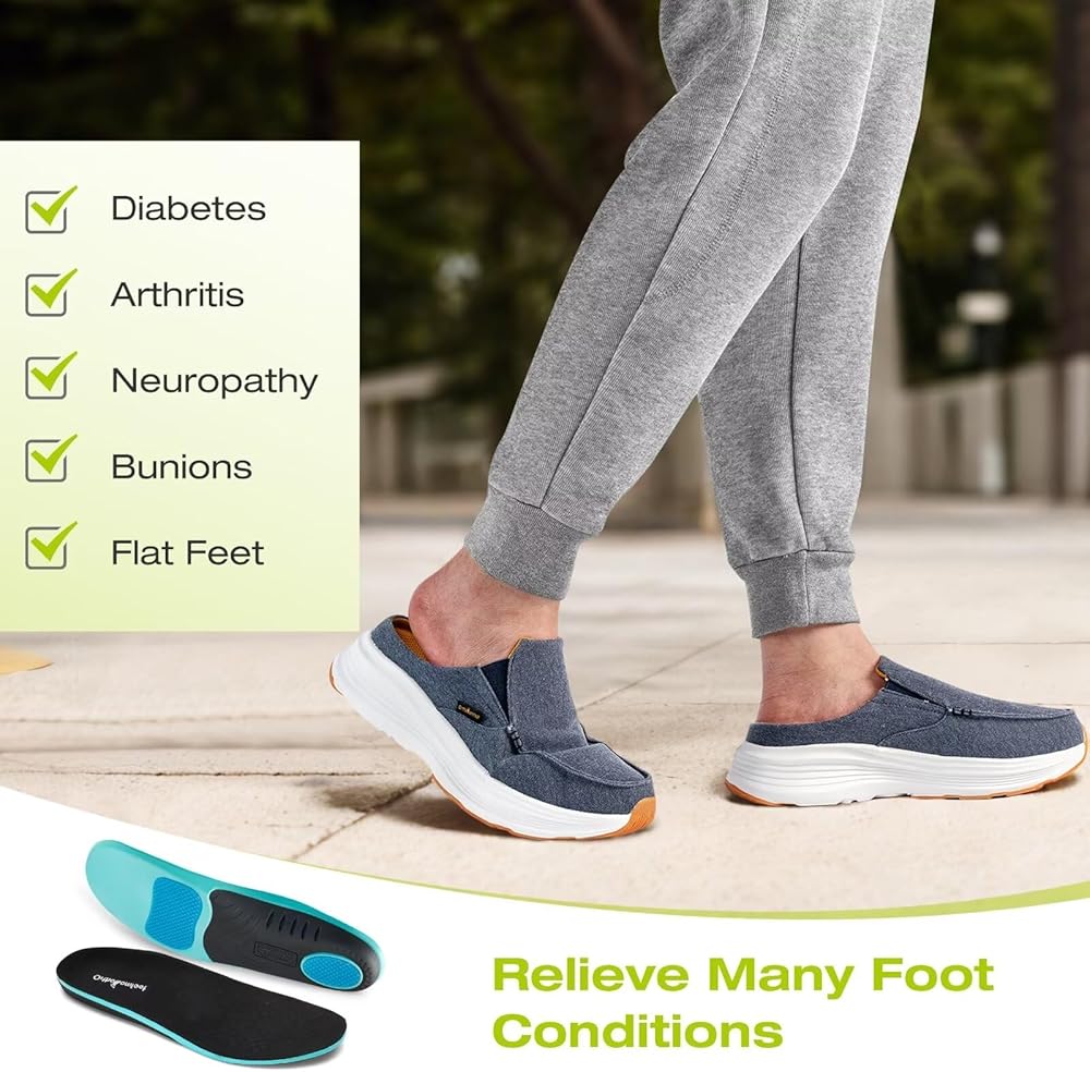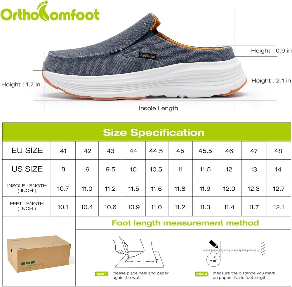 PLANTAR FASCIITIS? HEEL PAIN AND FOOT PAIN? NEUROPATHY? With The orthotics inserts improves foot and leg alignment, enhances comfort,and helps ease stress and pain caused by flat feet (Pronation), ankle and knee pain, back and hip pain, neuropathy, bunions, arthritis, and diabetes. if you have foot pain but still want to have a pair of comfortable casual fashion shoes, just choose our OrthoComfoot slippers, they will show the unique style for men and women