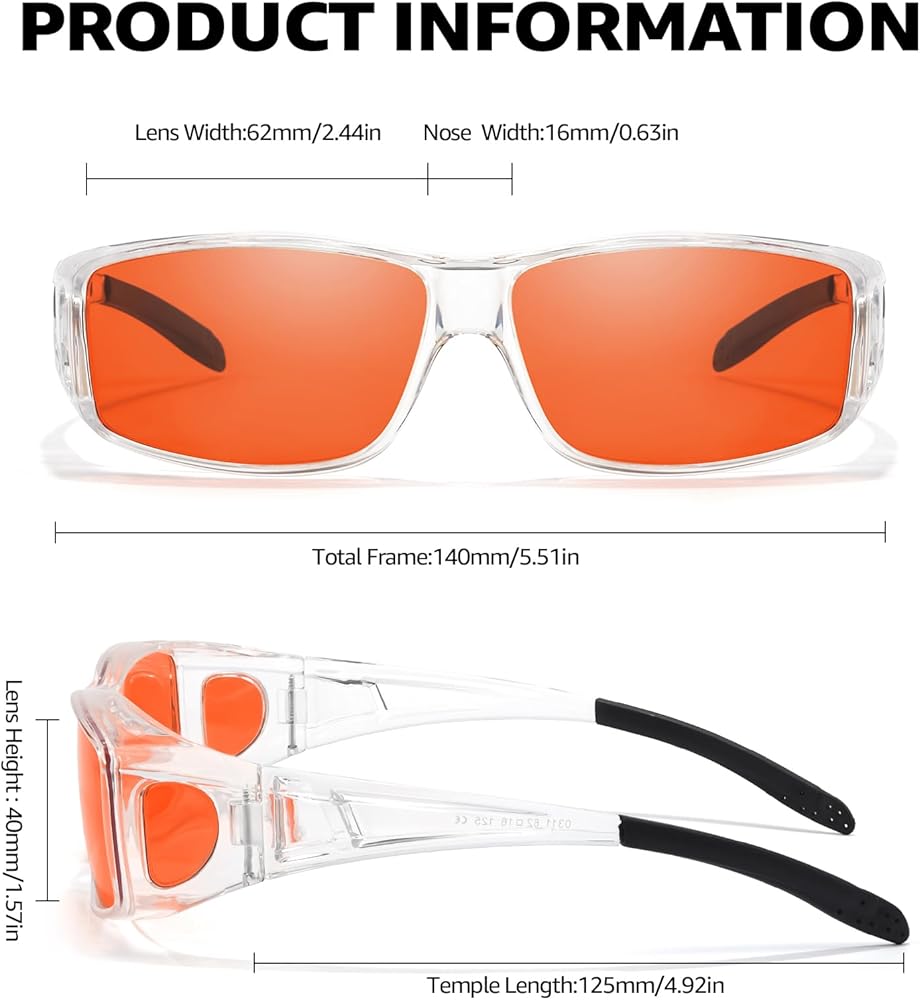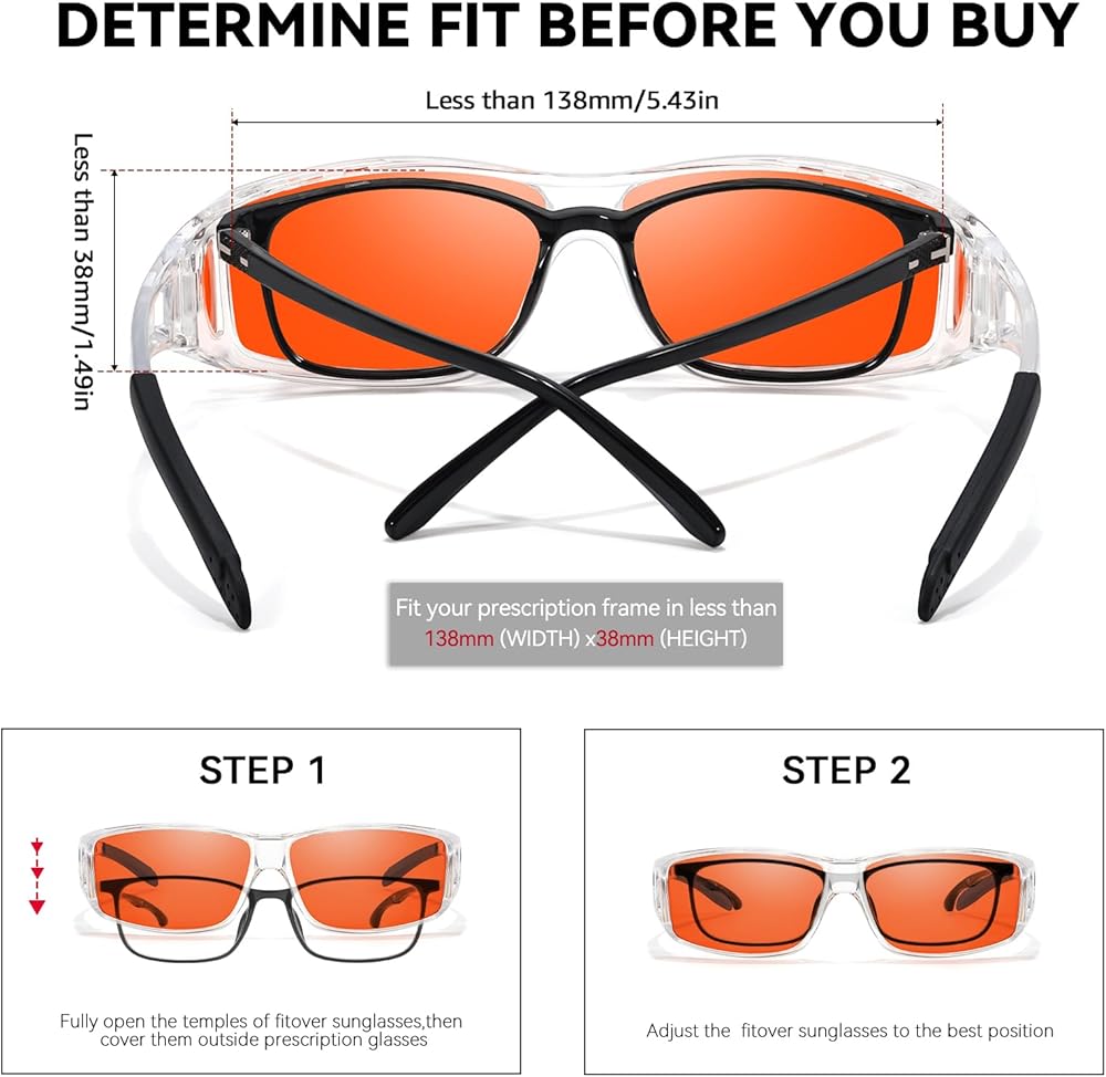Wrap Around Wear Over Glasses: The classically designed wrap around frames of our LVIOE glasses provide a timeless elegance that complements any outfit. This is specially designed for wearing over prescription eyewear, it easily wears over your regular glasses, such as RX Glasses/ Myopic Glasses/ Reading Glasses/ Presbyopic Glasses. You can also just use them as regular glasses, and happily, they don't have a nose rest that can get tangled in hair strands.