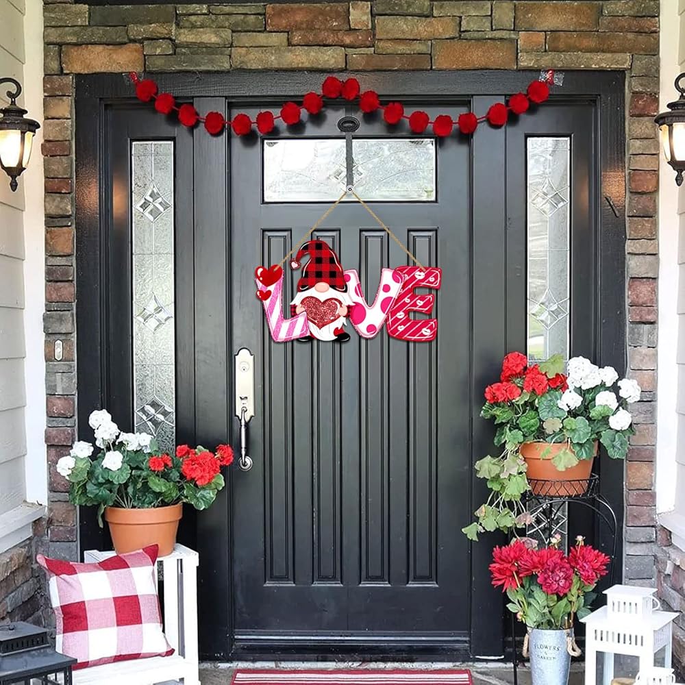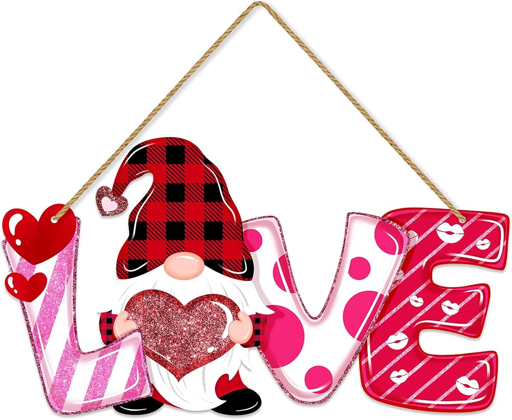 • ✦Valentines Day Decors--These Valentines Day decorative hanging signs include some classic and lovely elements, such as LOVE letters, gnome, red hearts, lip prints, full of romantic feelings, they can bring a lot of fun to your Valentines Day celebration. The love ornaments shows inspiration and encouragement. It can be hung on the door, wall, window, fireplace to decorate living room, bedroom, dining room, yard, coffee shop, office and other places.
