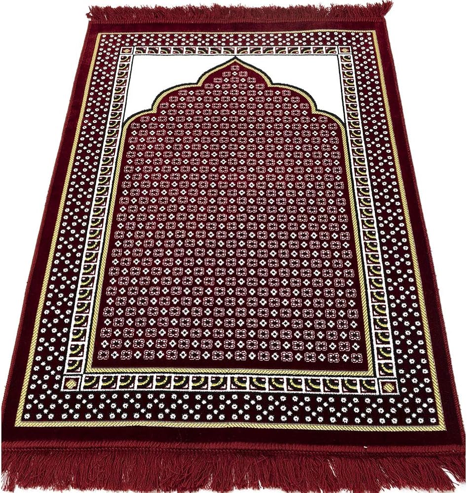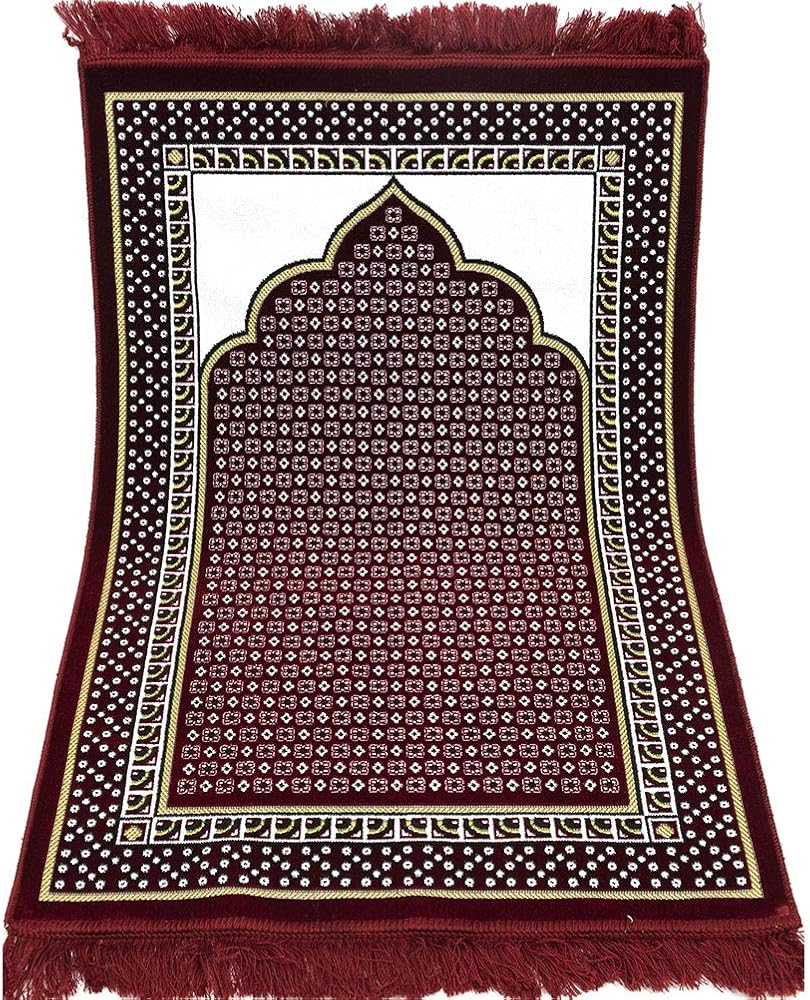 Why We Love It ---> Featuring a soft and velvety geometric arched pattern, this incredible Muslim prayer rug is perfect for your everyday needs. Its lightweight design, coupled with its versatility and ease of folding, makes this Turkish janamaz the perfect choice for traveling! The perfect mat for prayer, or a great Islamic gift, Eid gift, or Ramadan gifts!