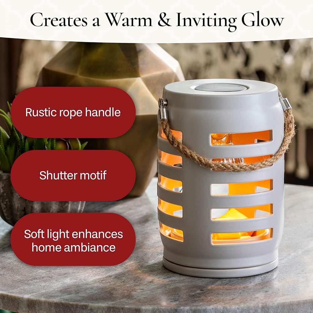 Add a touch of elegance to your home with the Trellis Lantern Canopy Illumination Warmer. Inspired by on-trend trellis patterns, this elegant warmer features a metal handle and is accented with a halogen bulb that warms wax melts in the warming dish to fill large areas with fragrance.