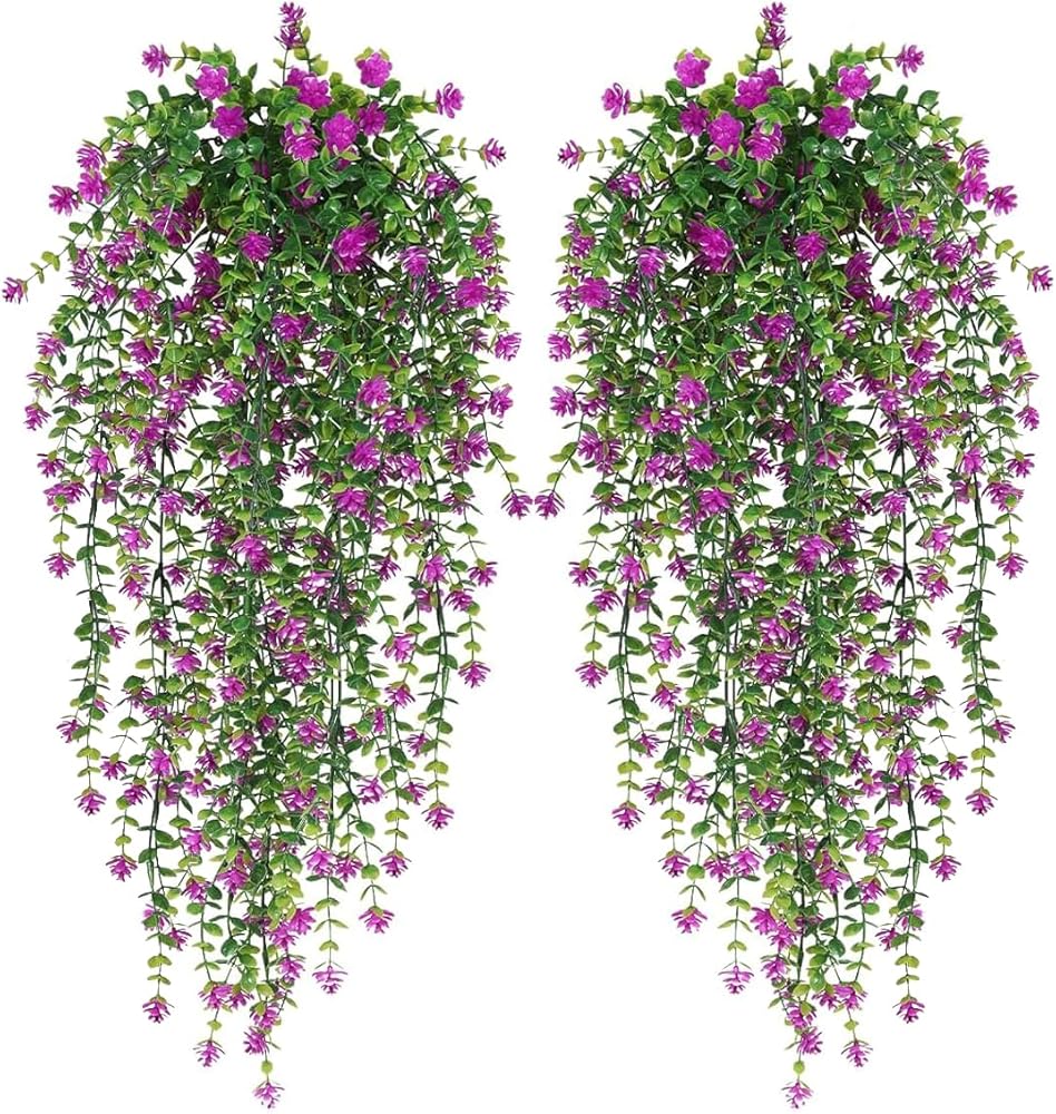 ❀Fake Hanging Flower Quantity: 4 packs of artificial hanging plants with flower, and the total length of the artificially hanging plants is approx. 30 inch,has 5 flexible stems, bushy leaves and flowers, make it look very vivid and three-dimensional.