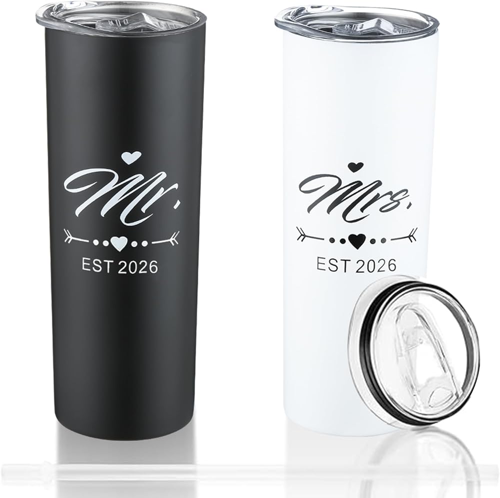 Perfect Gift Package:This mr and mrs gifts box include 2*20oz black and white couple water drink tumblers with lids and straws,.This Mr and Mrs tumbler gift package would be an ideal choice to meet your gift needs