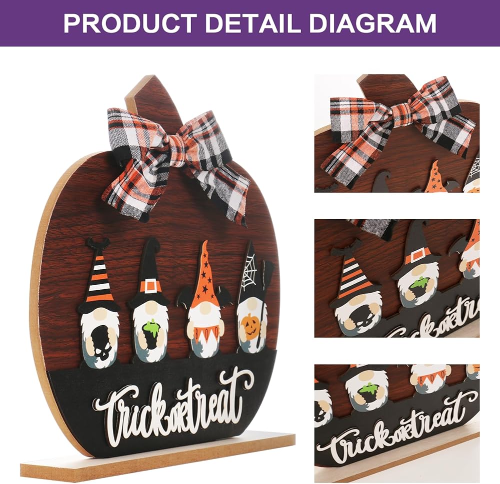 HIGH QUALITY CRAFTSMANSHIP: The Halloween pumpkin sign decoration is made of high-quality materials, and the combination of its gnome and bow design craftsmanship makes it a truly outstanding holiday decoration. Not only is it not easily damaged, but it can also be reused year after year.