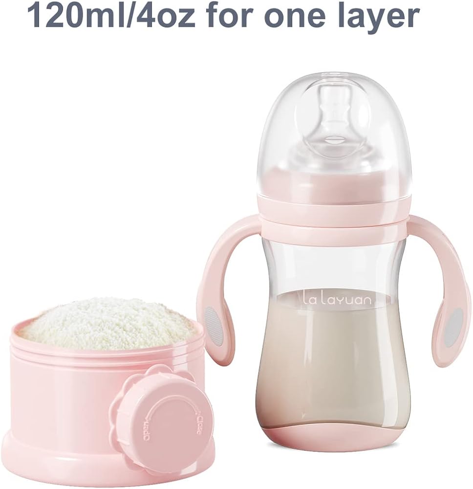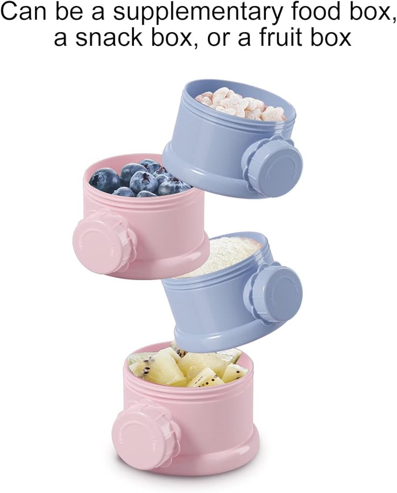 CAPACITY CONTAIN: 4 layers design, each can contain 120ml. You can put milk powder in each layer box for every meals, you can carry 4 times of milk powder for outdoor needed , very convenient and practical, makes on-the-go feeding easier.