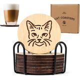 ABSORBENT LASER-CUT COASTERS - Our set of 6 bamboo coasters with dog face is not only cute for your home decor, but the dog engraving catches all moisture, spills and condensation, protecting your tabletops and countertops from damage. And thanks to the deep engraving, the coaster won't stick to your glass!
