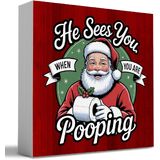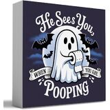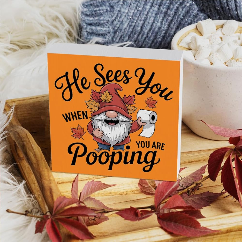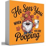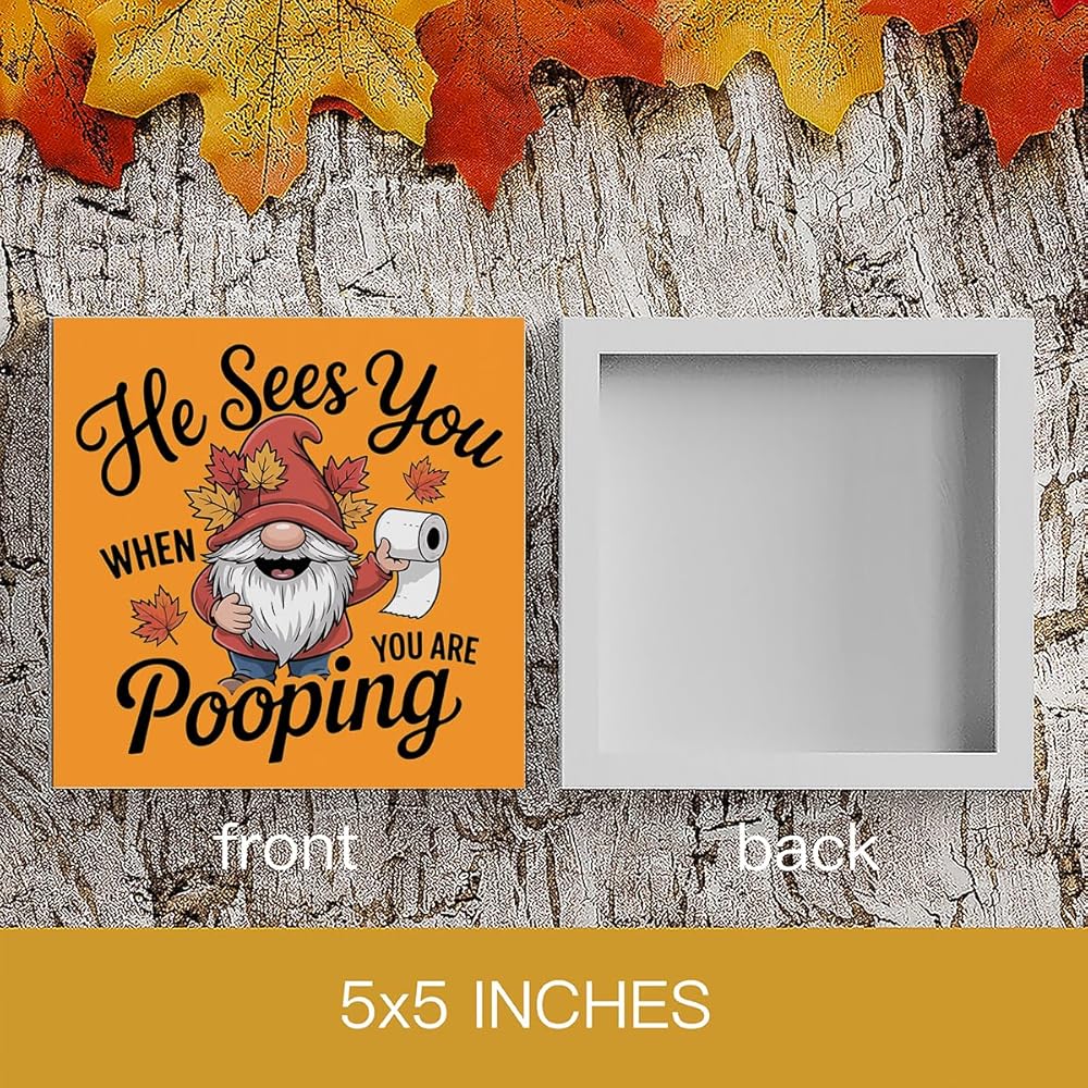 HTBIG Funny Fall Wooden Box Bathroom Sign Decor He Sees You When You Pooping Bathroom Wooden Box Decor It In The 5 x 5 Inch
