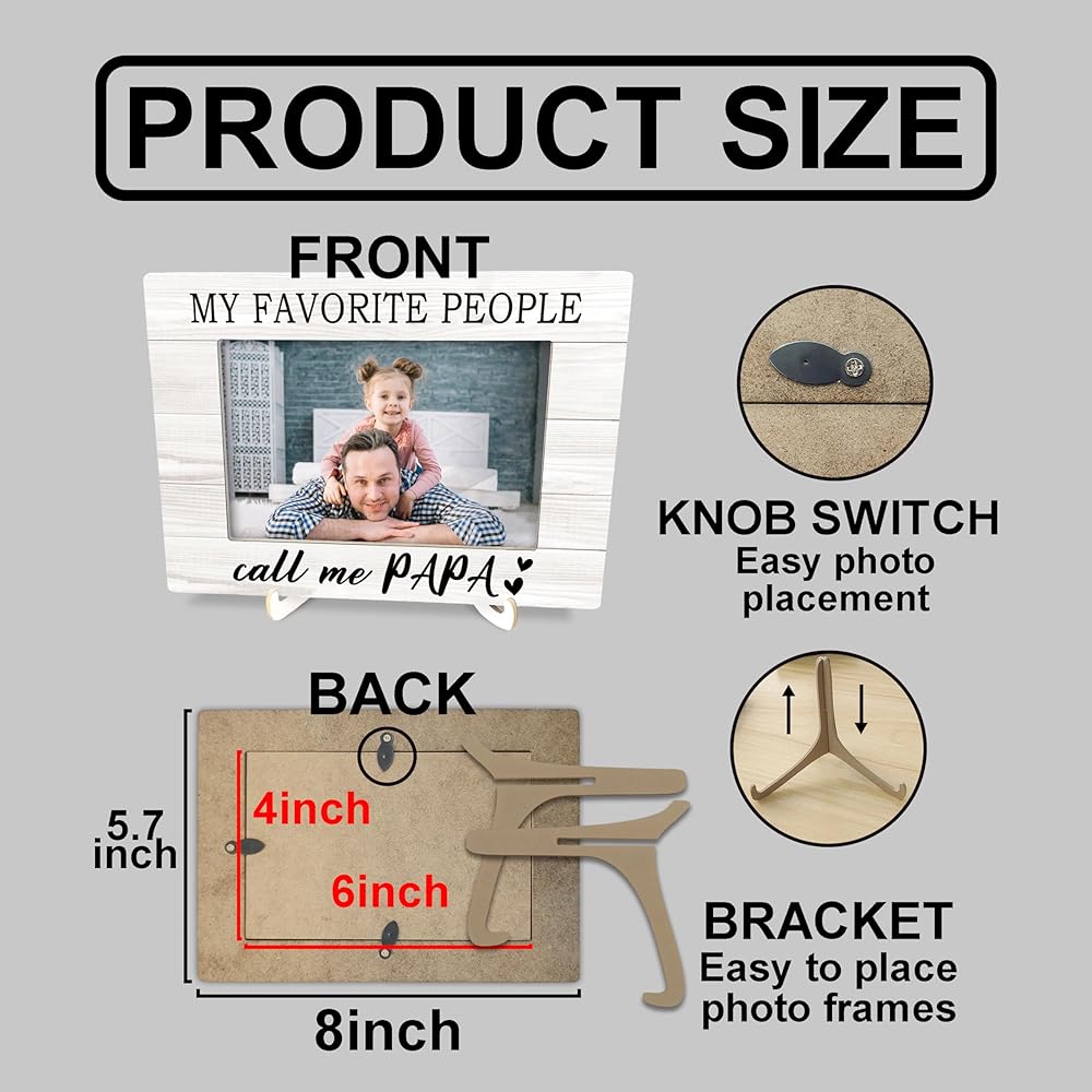 Papa 8x6 Picture Frames, Gifts for Grandpa Pop Pop Grandfather Wood Photo Frame, Father’s Day Grandparent's Day Daddy Gifts from Son Daughter Picture Frame for Wall Tabletop Display