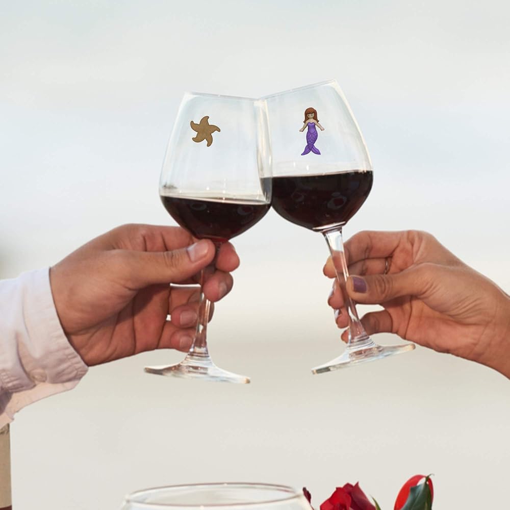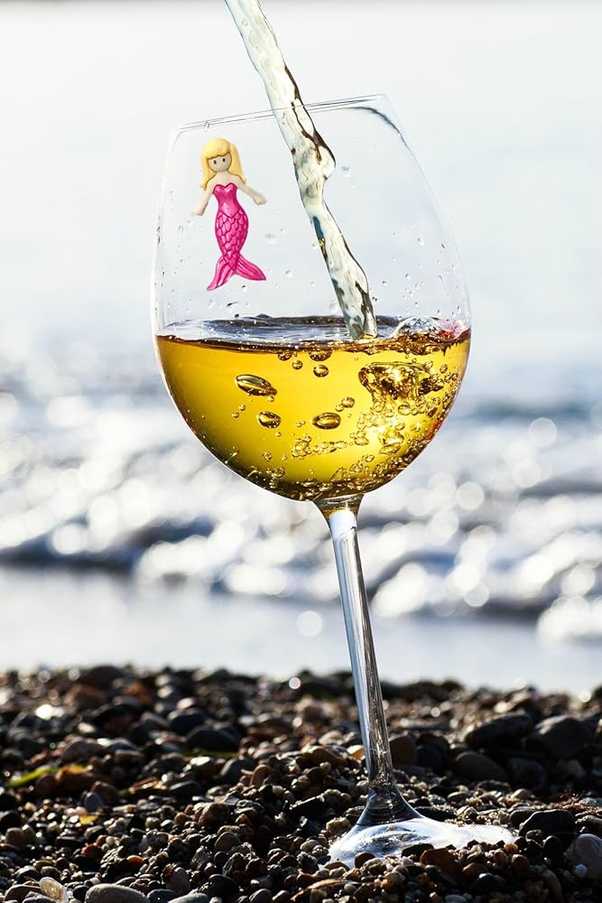 FUN MERMAID GIFT FOR WOMEN These colorful, whimsical mermaids make a unique wine gift. They appear to be magically sticking to the glass, but are actually attaching THROUGH the glass with two strong magnets.