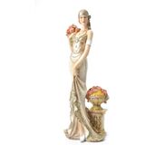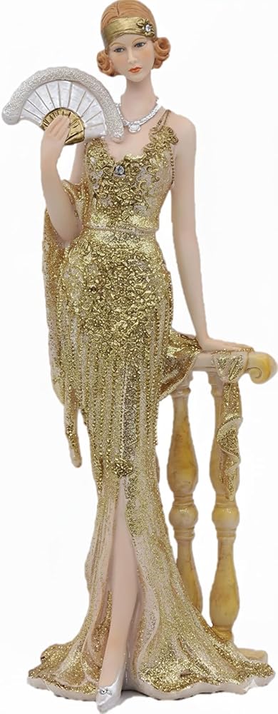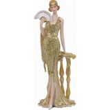 Comfy Hour 13" Glamour Elegance Victorian Art Figurine, Camille Lady with Fan Statue, Roaring 20s Art Deco Style Home Decor Accent, Polyresin Artisan Crafted Sculpture, 1 Unit (Gold)