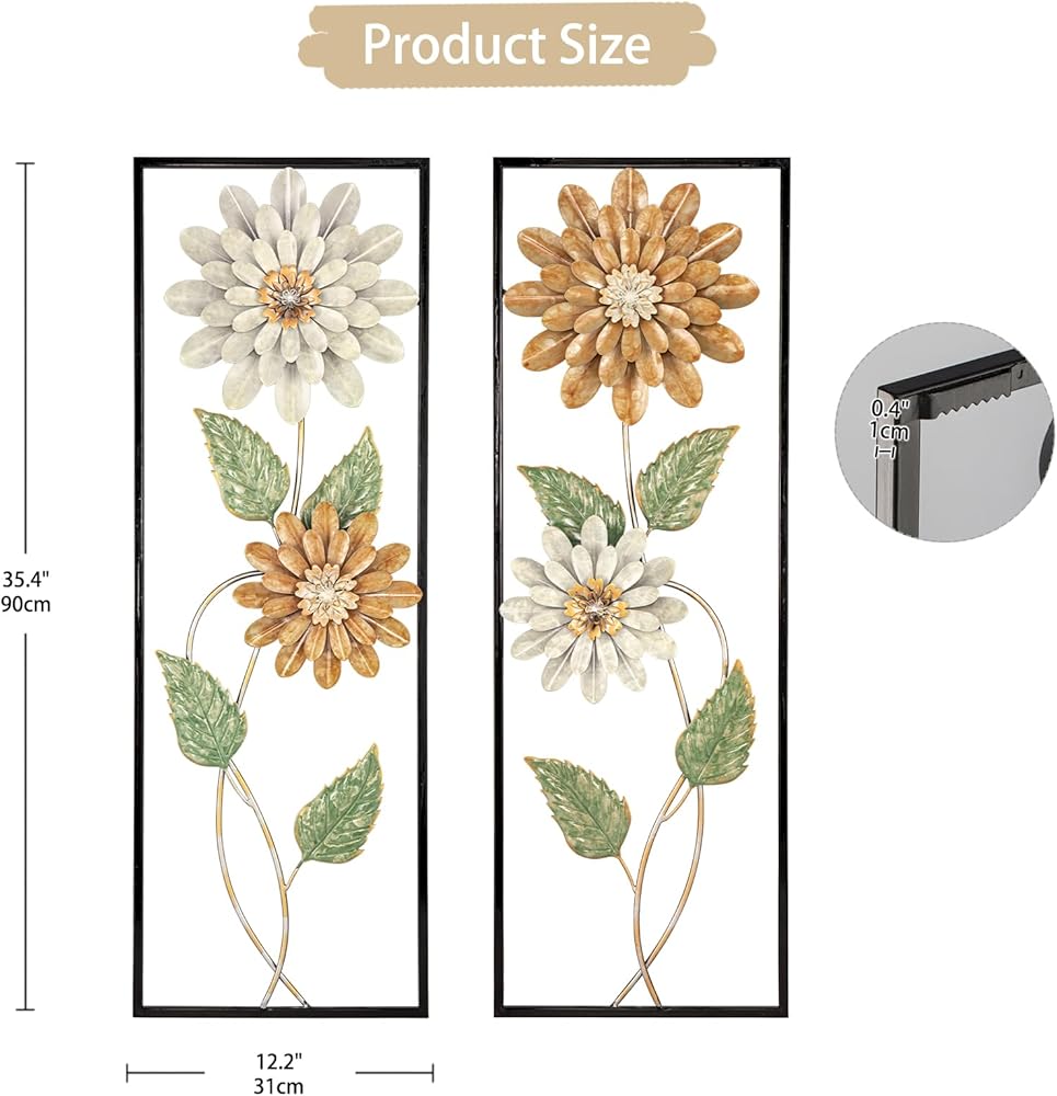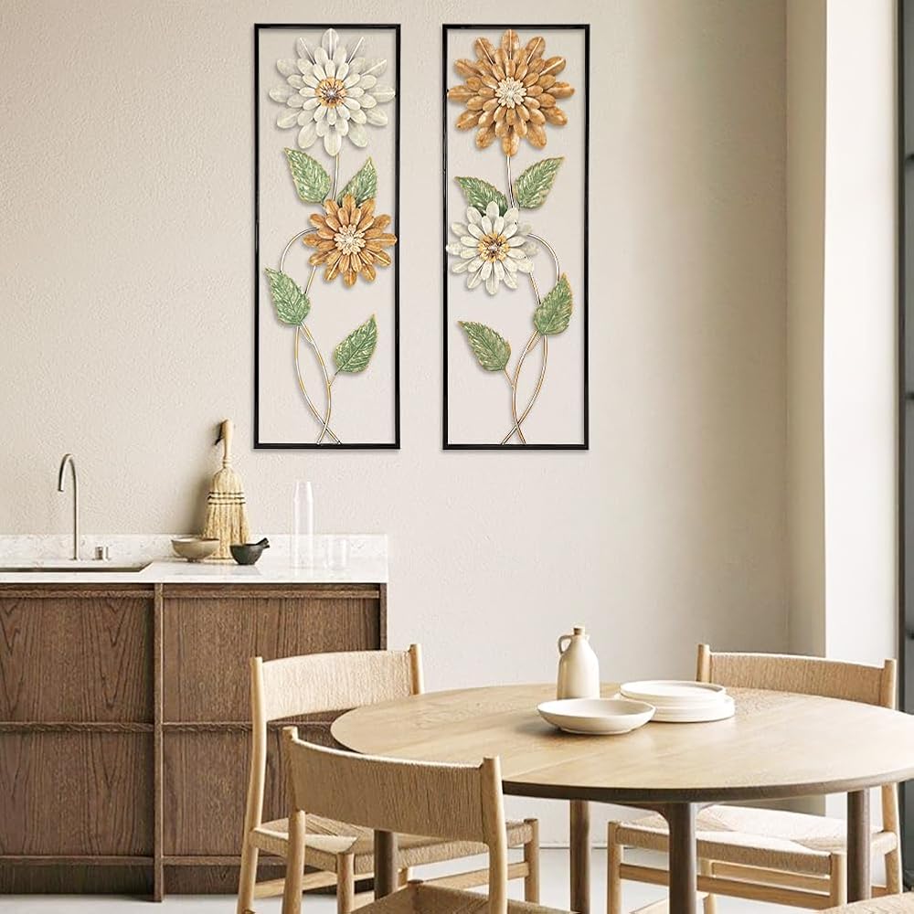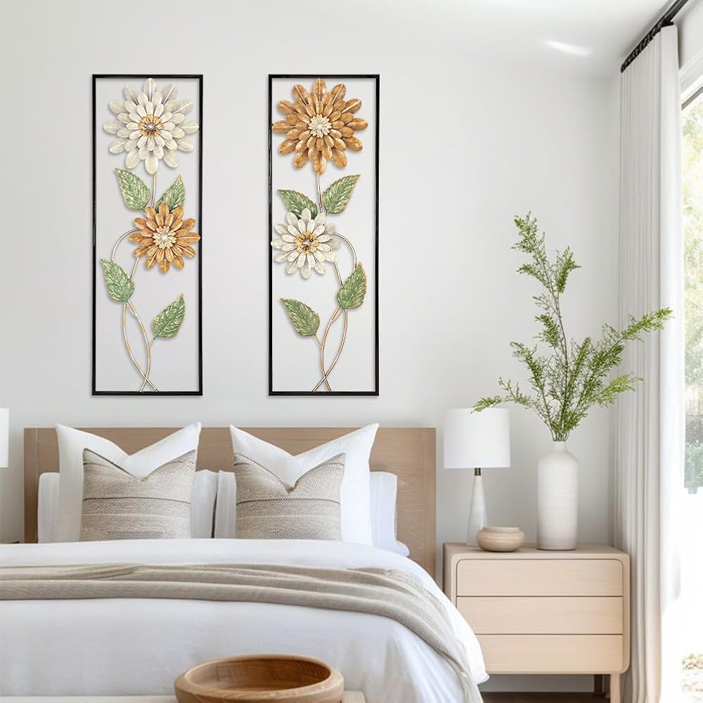 Arborus Metal Wall Art, Set of 2 Large Mordern Rectangular Wall Panels, Abstract Minimalist Flower Wall Décor for Living Room, Bedroom, Kitchen, Hallway Decoration