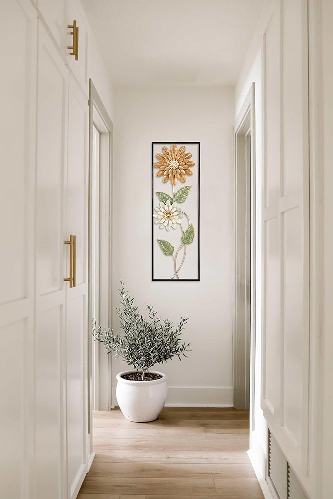 This two-piece wall decor is an upscale twist on natural flower and leaves and makes a stunning presence that is perfect for the entryway, living room, bedroom, or dining room. Each wall accent has a slightly different elements which is perfect to place together or in different rooms.