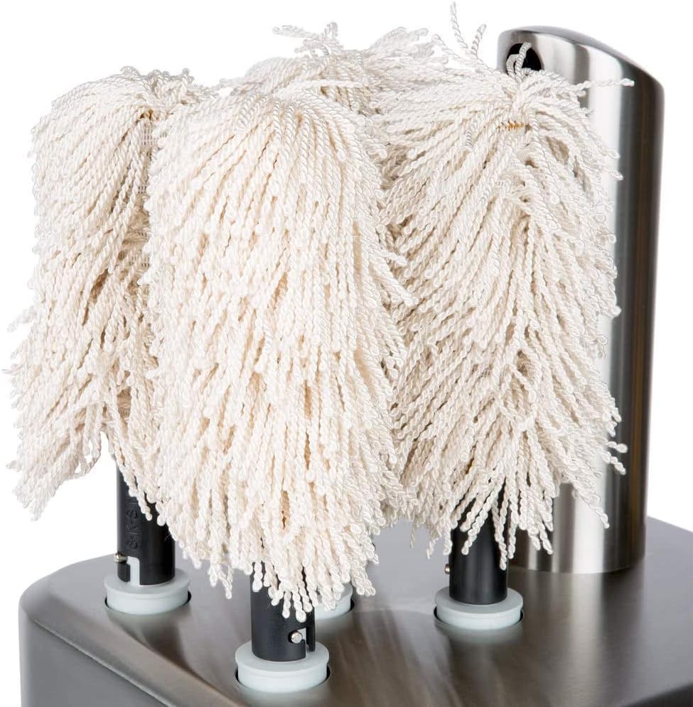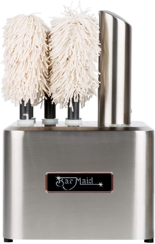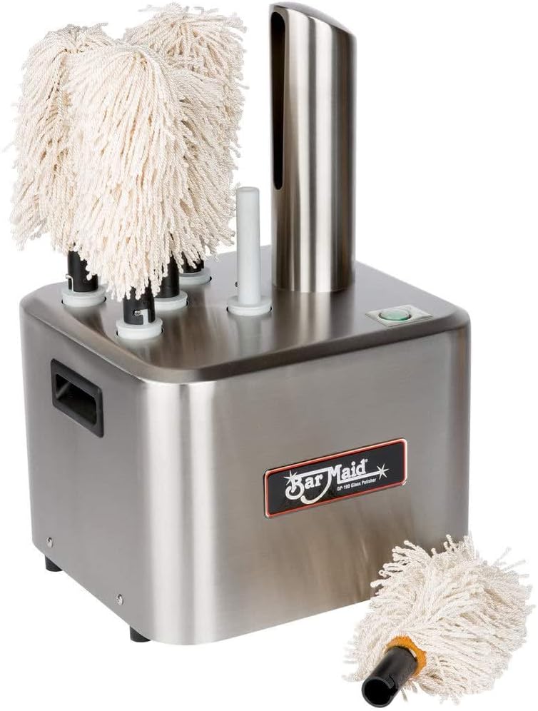 The Bar Maid GP-3MINI electric glass polisher and dryer quickly polishes and dries glassware ideal for use in restaurants, bars, hotels or catering environments. Featuring (5) rotating polishing heads, this glass polisher polishes the inside and outside of the glass simultaneously. Warm air is gently blown inside and outside the glass to allow for drying and polishing in one easy step. This versatile electric glass polisher accommodates various types of barware including pint glasses, beer glasses and wine glasses. Brushes quickly removed and are machine washable for cleaning. Measures: 10.63” x 9.25” x 20.9” (L x W x H).