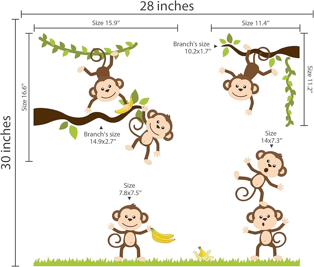 Monkey Business Wall Decal Jungle Fun 17 pcs - Rooms and Stickers