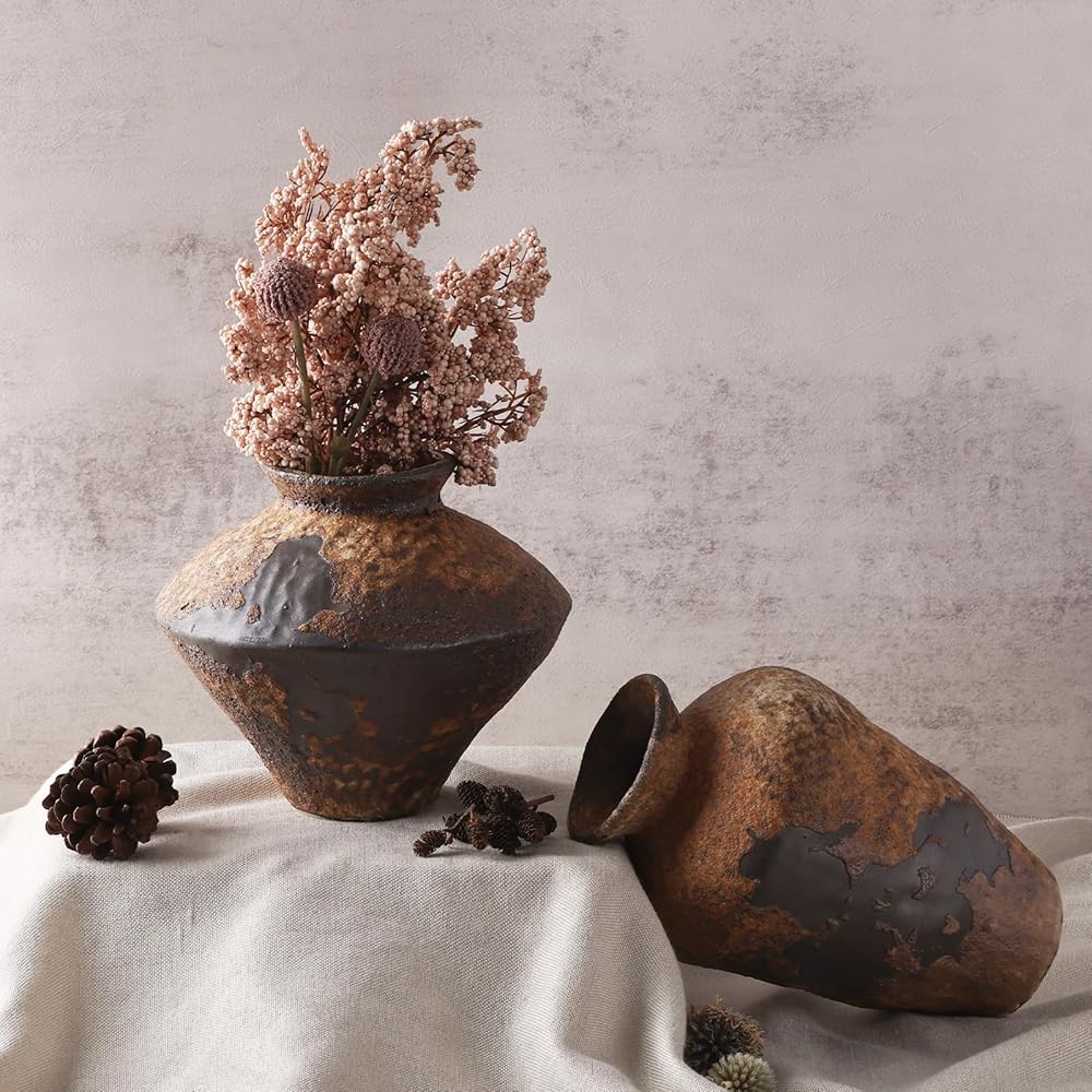 These rustic vases exude the charm of ancient craftsmanship. Each piece tells a story of tradition and artisanal skill, handcrafted from high-quality ceramic. The rustic design with natural earthy tones and rough surfaces makes these antique vases a perfect decorative element. They embody a connection to the past and bring a warm, inviting atmosphere to any room. Perfect for complementing your existing furniture and adding a unique touch to your home decor.