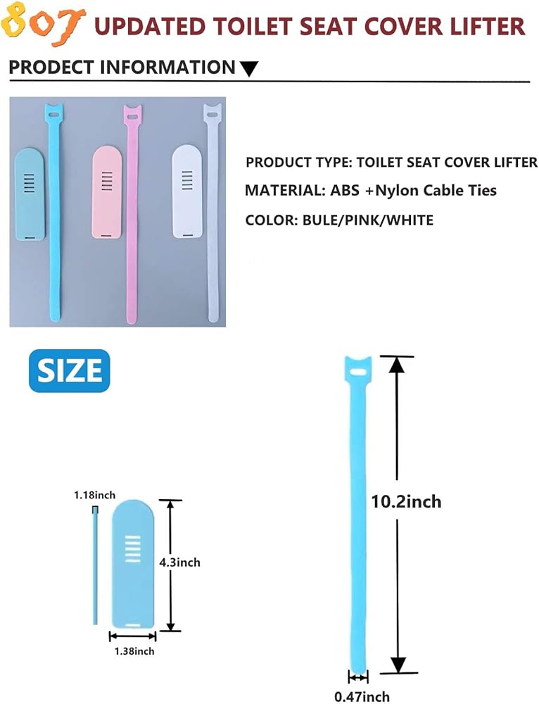 • 💛【HIGH QUALITY】--Toilet Seat Lifter Toilet Cover Lift Handle,The material used in making these toilet seat cover lifter is durable and lightweight plastic that is easy to wipe clean. Easily installs on your toilet seat to allow you to Lift and Lower it without touching your seat.