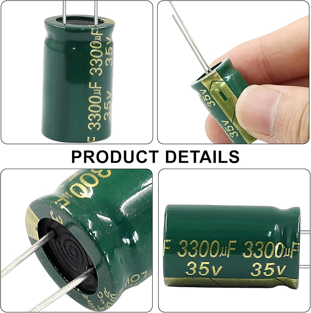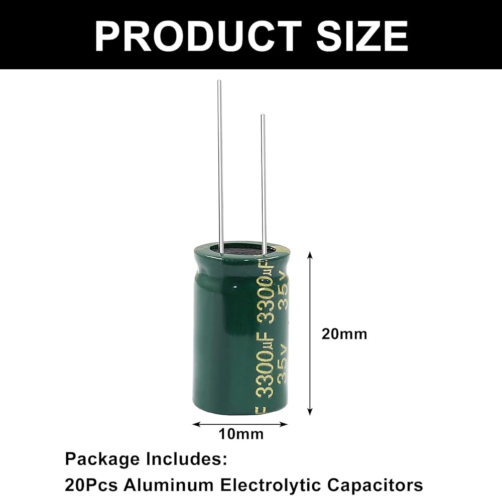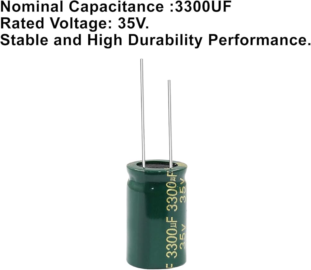 Large Capacity and Compact Size: With a nominal capacitance of 3300uF, this capacitor offers ample storage capacity for your electronic projects. Despite its large capacity, it maintains a compact size of 18x35mm, allowing for easy integration into space-constrained circuits.
