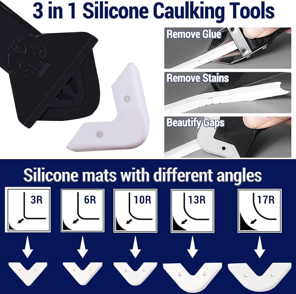 3-in-1 Caulking Tool: The grout repair kit comes with a pack of 3-in-1 silicone caulk tools that function as an angle scraper, glass glue blade, glue scraper and joint repair tool. Also features a replaceable silicone spatula with 5 different angles to help you easily repair seams and remove adhesive residue, perfect for all your caulking needs.