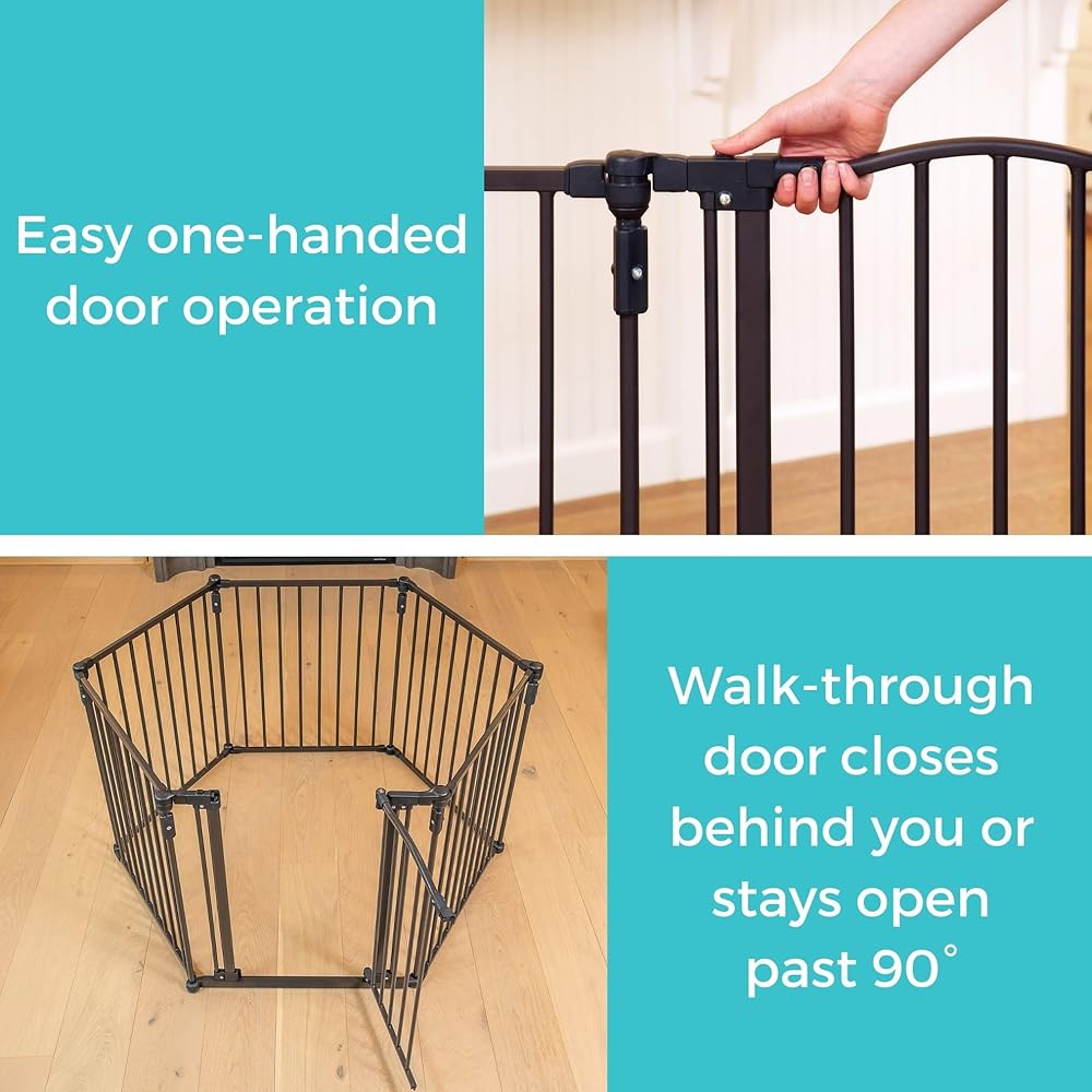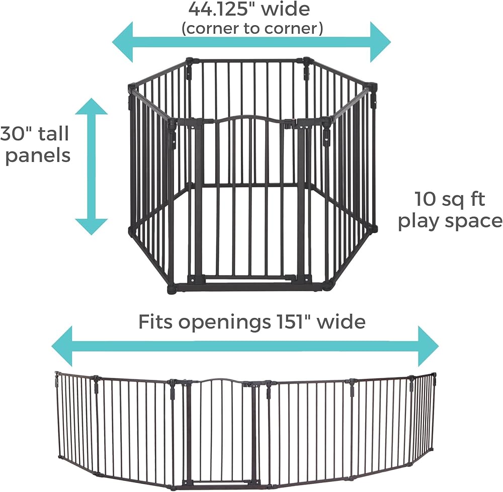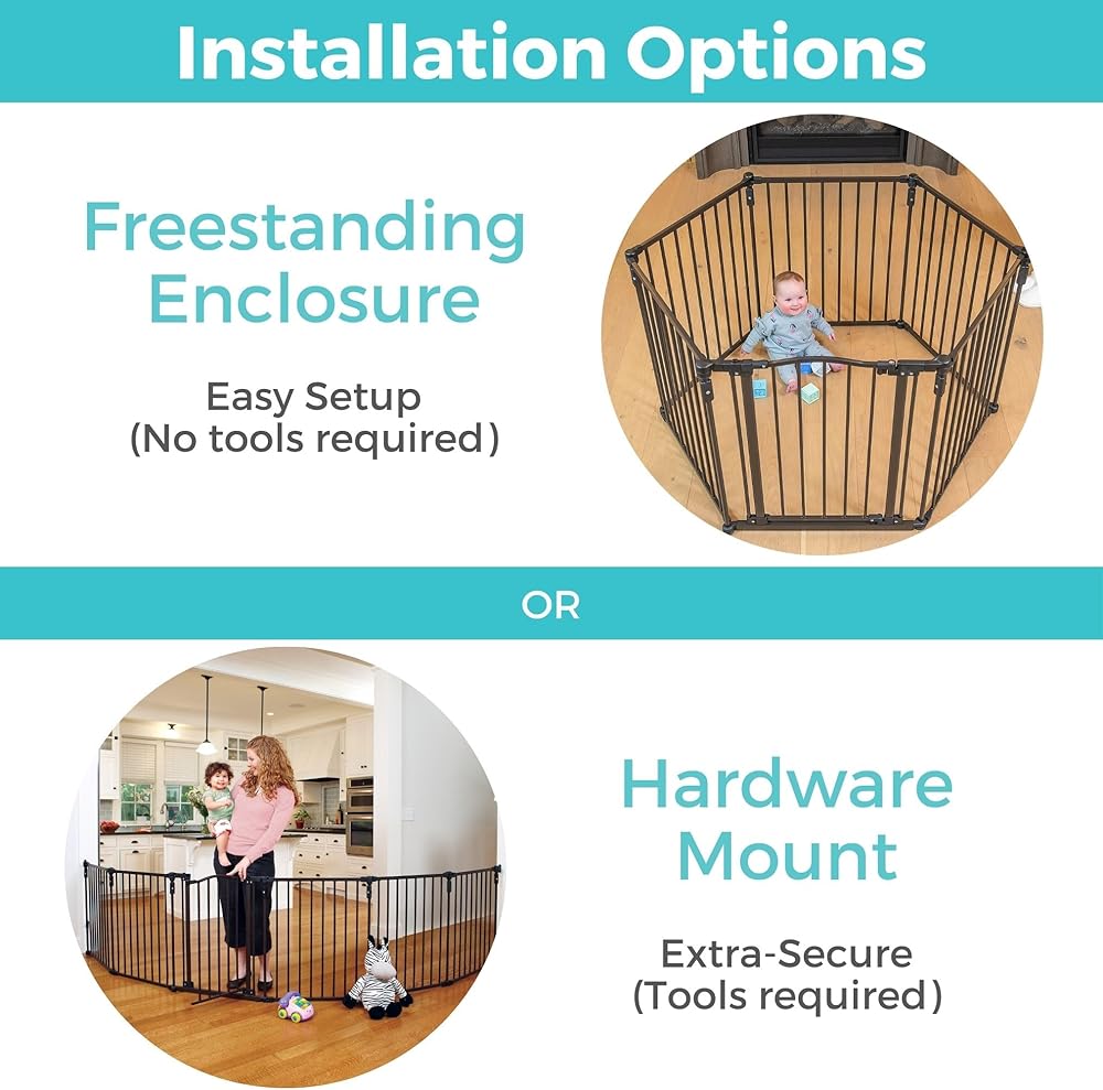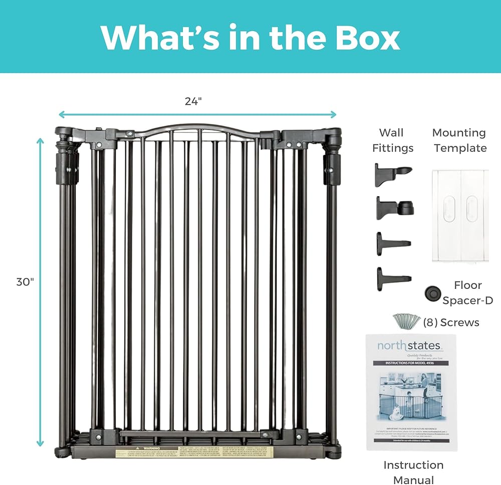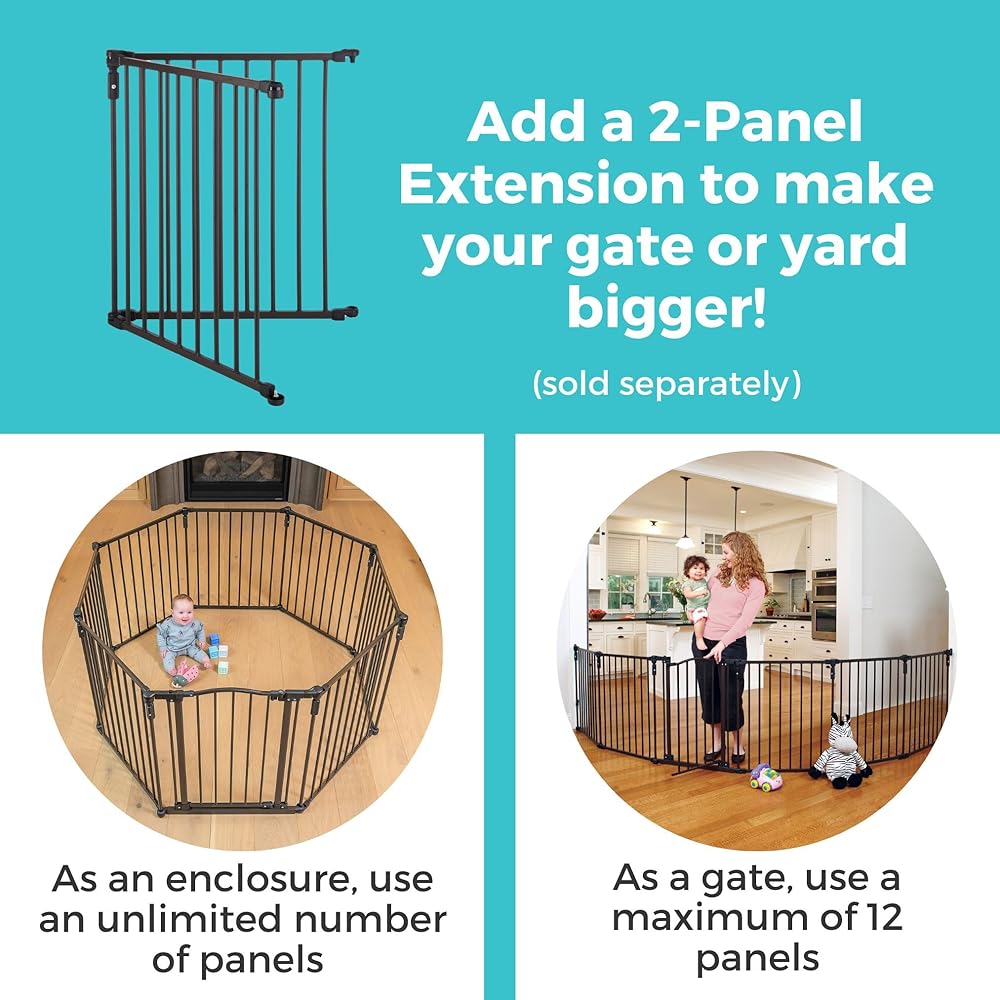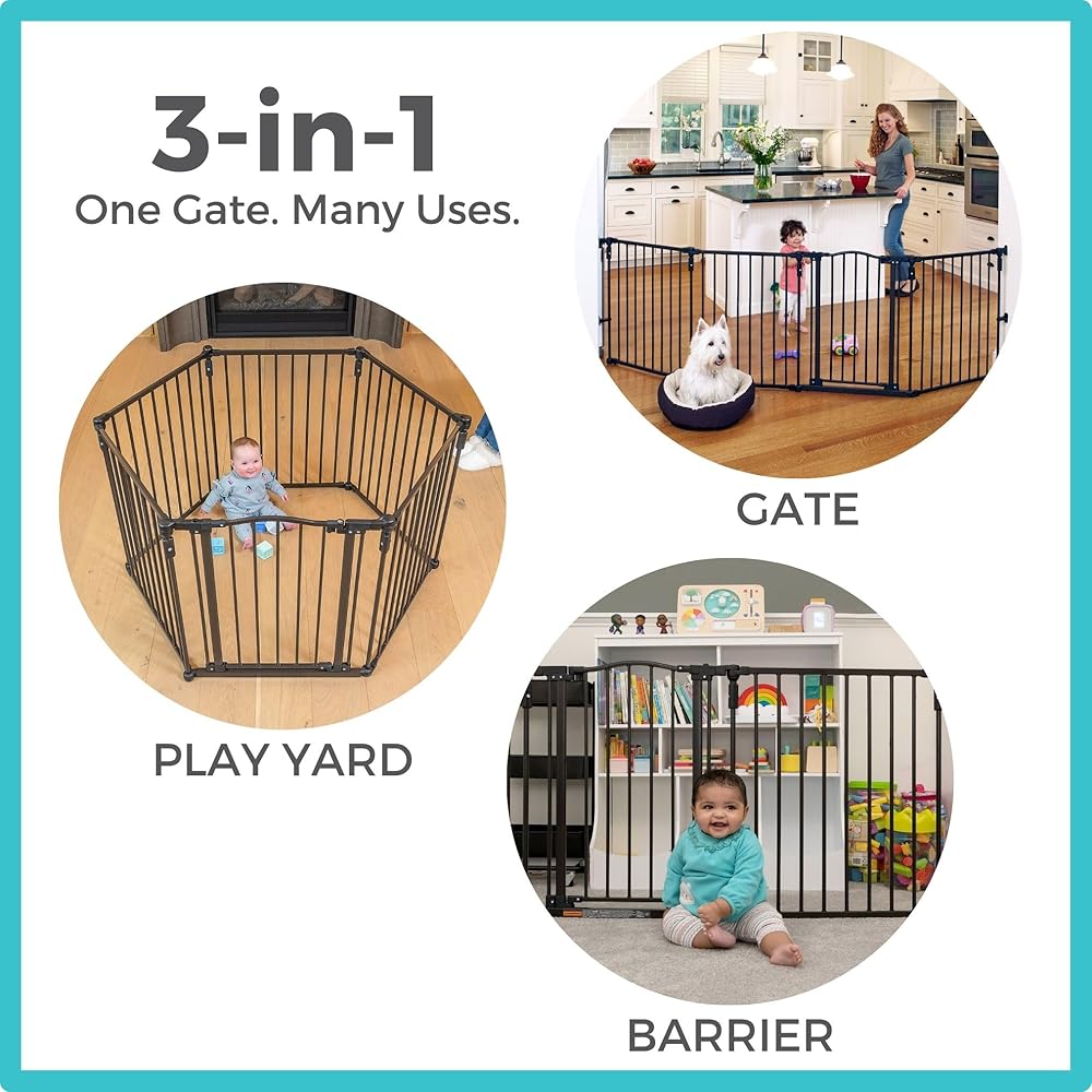 KEEPING TODDLERS SAFE SINCE 1953: Worry-Free Safety! The Toddleroo by North States 3-in-1 Arched Décor Metal Superyard Extension is versatile and reliable - adding 48” when used as a barrier or an additional 9 sq. ft. of play space when used as a play yard.