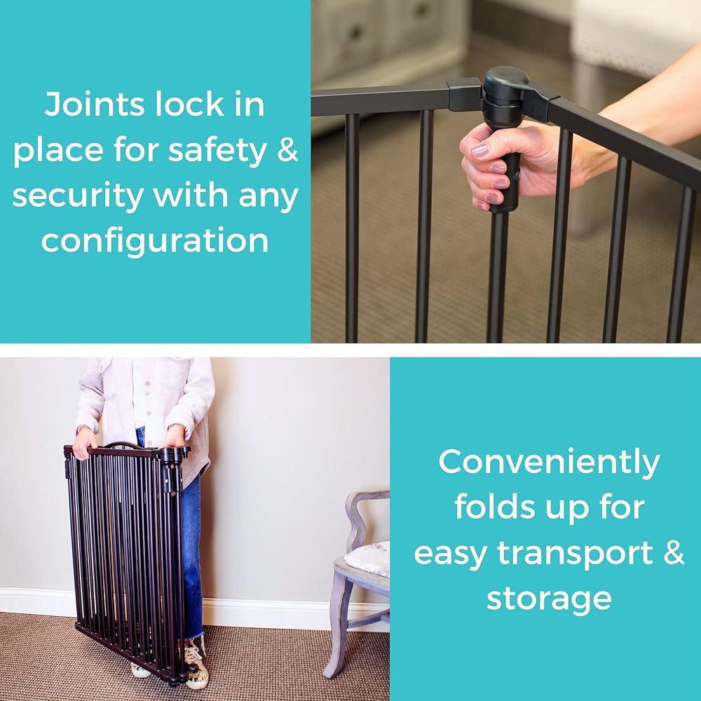 VERSATILE: Block off multiple doorways and hazards at once with this extension, or configure into a play space of any size. Locking panel joints allow you to arrange the superyard into any shape to fit even the most irregular rooms.
