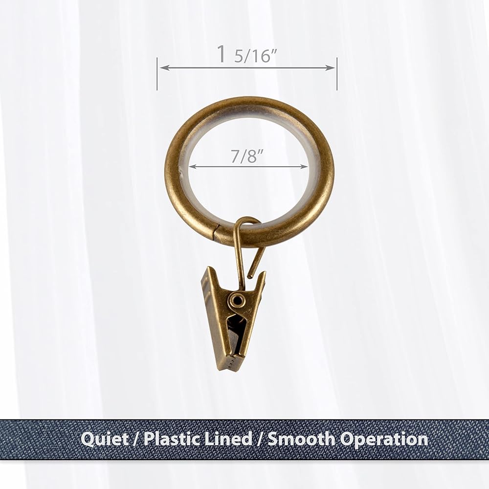 Rod Desyne 7/8 inch Noise-Canceling Curtain Rings w/Clip (Set of 10) - Antique Brass