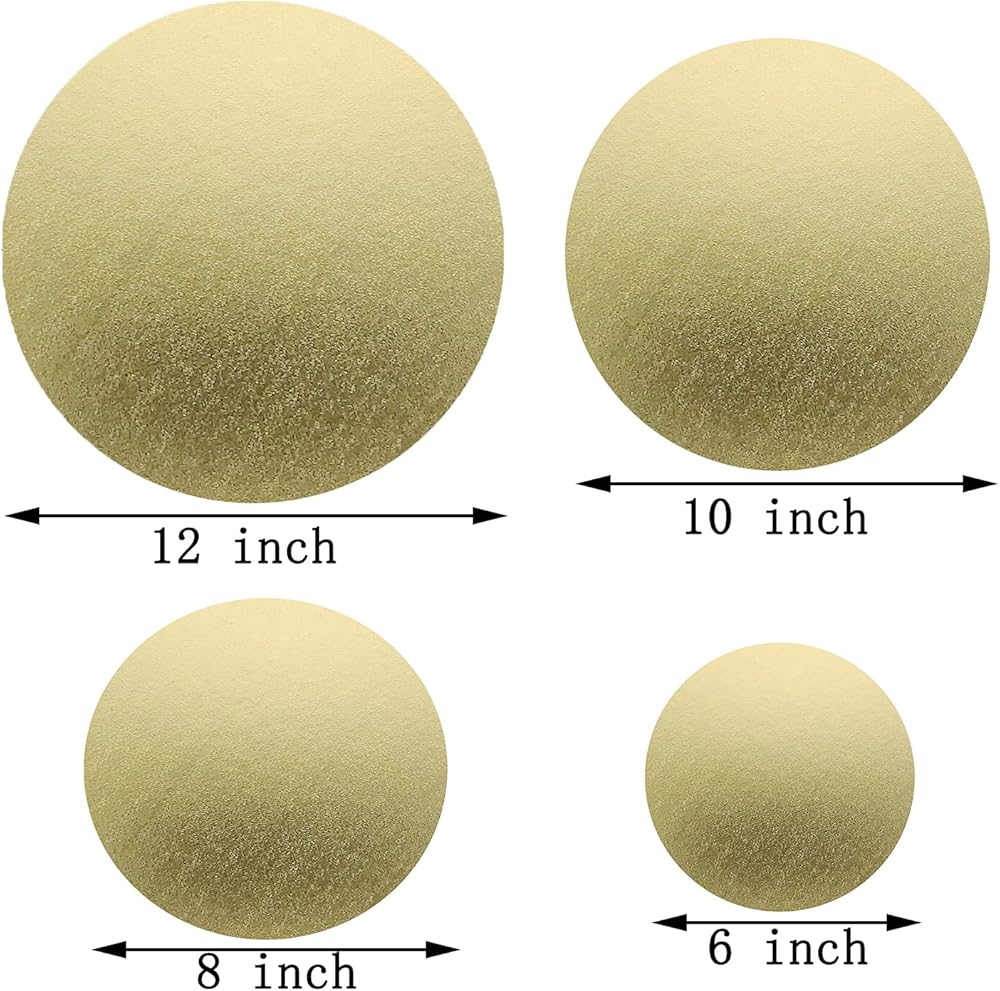 Package include: Pack of 4 Cake board, 1 of Each Size, diameter 6 + 8 + 10 + 12 Inches and 0.08 inches thick.