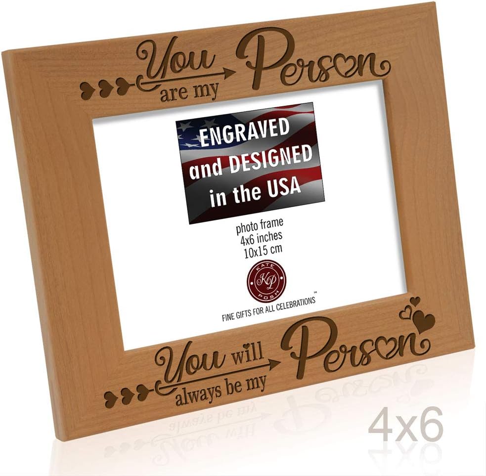 KATE POSH - You are my Person You will always be my Person Engraved Natural Wood Picture Frame - Anniversary, Weddings, Husband, Wife, Boyfriend, Girlfriend, Gifts for Couples in Love (4x6-Horizontal)