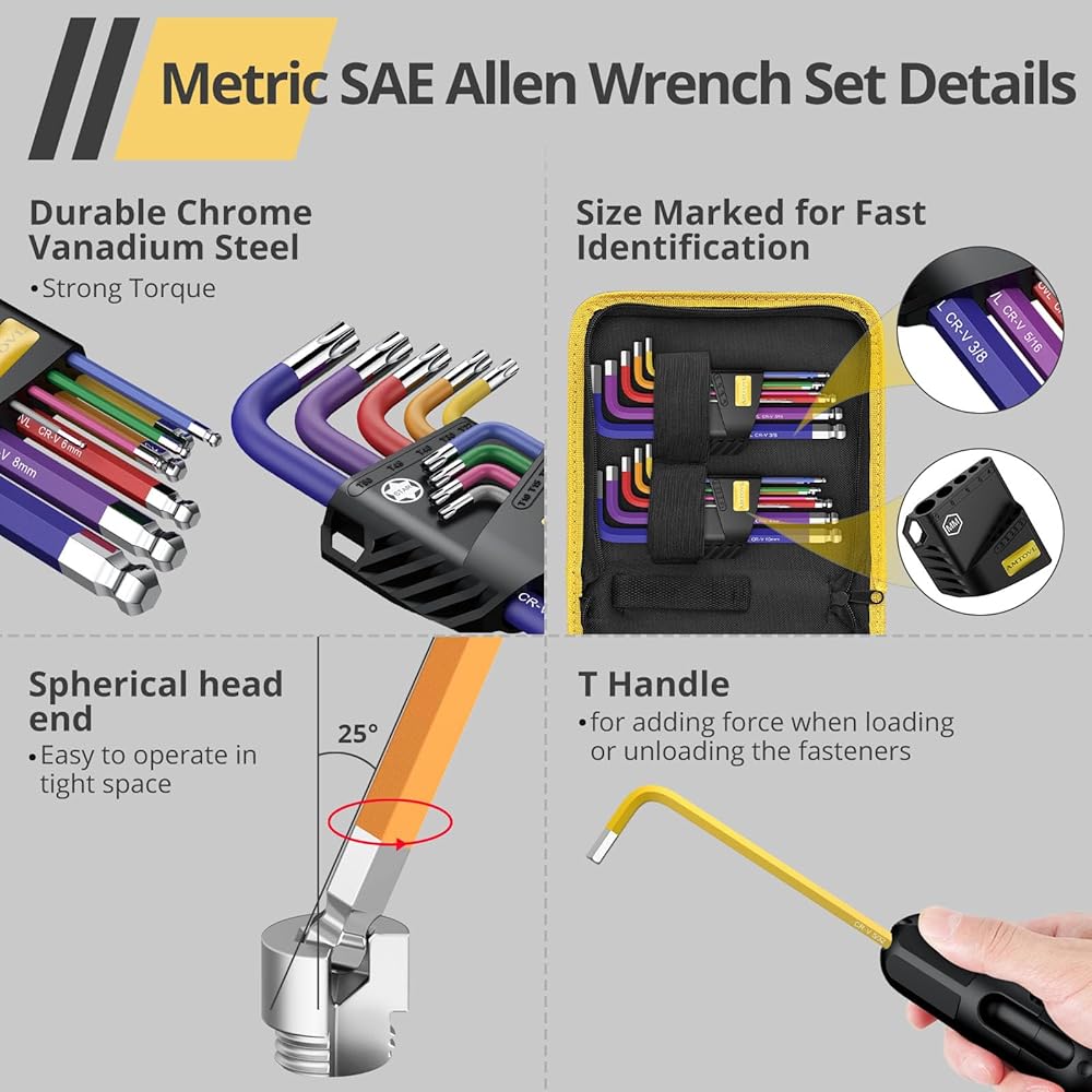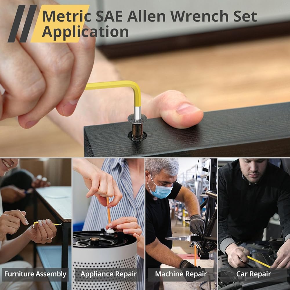 【Versatile Use】Whether you're a DIY enthusiast or a professional mechanic, our allen wrench set is ideal for repairing electronics, bikes, machinery, automobiles, and motorcycles. Plus, the clear visible size markings and storage bag ensure easy organization and storage.