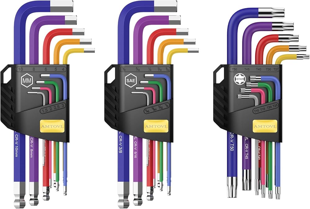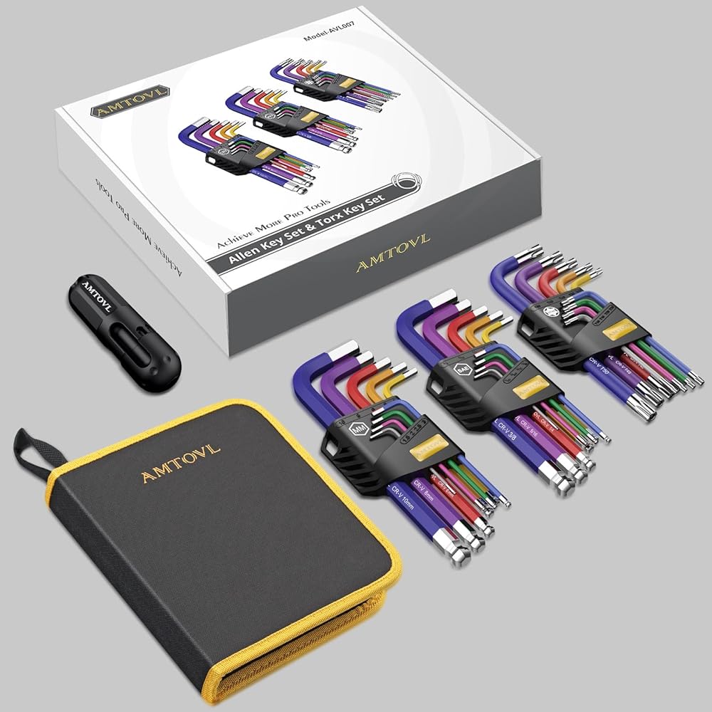 AMTOVL Hex Keys Set - Allen Key Set & Torx Key Set, Metric/Imperial 27PCS Allen Wrench Set Long Arm Ball Head Design with T-Handle Color Coding 1.5-10mm, T10-T50, 1/16-3/8