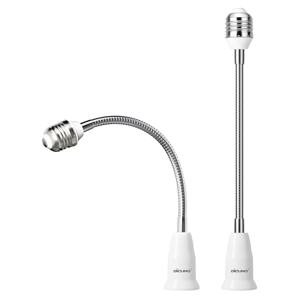 DiCUNO E26 to E26 Socket Extender (27.5CM/10.83 Inch Extension), Standard Screw Base, 165℃ Heat-Resistant No Fire Hazard, Maximum Wattage 200W, Bendable Light Bulb Extender Adapter, 2-Pack