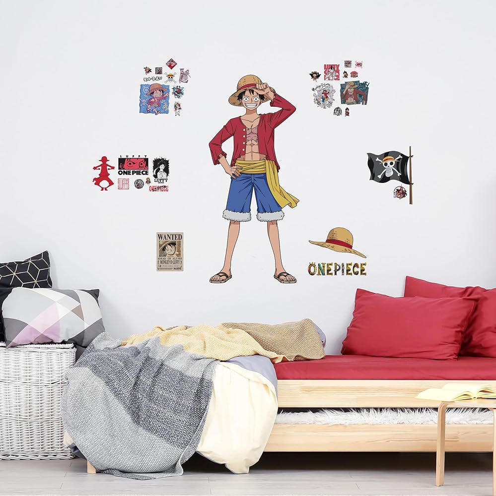 Peel and stick wall decal set with officially-licensed One Piece Straw Hat Crew imagery.